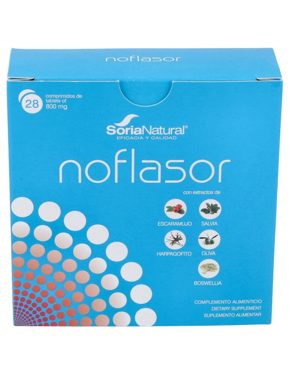 Ingredientes activos por 2 comprimidos: 305,08 mg de extracto liofilizado de rosa canina (56 mg ácido maslínico). 169,5 mg de extracto seco de salvia (25,4 mg ácido ursólico). 135,6 mg de extracto seco de harpagofito (27 mg harpagósidos). 101,7 mg de extracto terpénico de oliva (12,2 mg ácido oleanólico). 81,36 mg de extracto seco de boswellia serrata (53 mg ácidos boswélicos).