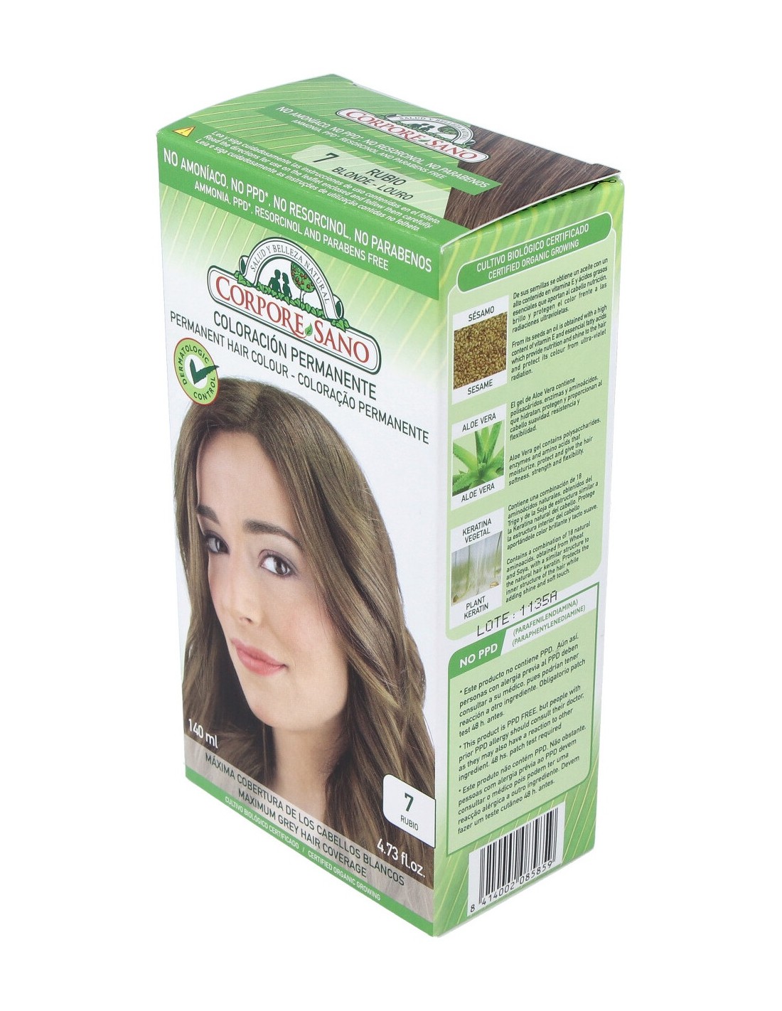 No utilizar el tinte capilar en caso de tener una erupción cutánea en el rostro o si se tiene el cuero cabelludo sensible, irritado o dañado. Si alguna vez se experimenta cualquier tipo de reacción después de la coloración del cabello. Si alguna vez se experimenta una reacción a los tatuajes temporales de “henna negra"""". No utilizar para teñir cejas ni pestañas. Formato 140 ml. Nº 7 Rubio