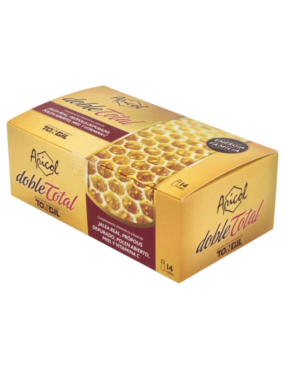 Complemento alimenticio en formato de viales que está especialmente ideado para ayudar a aportar pro-vitaminas al cuerpo, especialmente en casos de estados de decaimiento, en el crecimiento rápido, agotamiento físico y mental y para complementar las dietas pobres en grasas animales, gracias a su compuesto que está elaborado a base de miel, jalea real y polen.