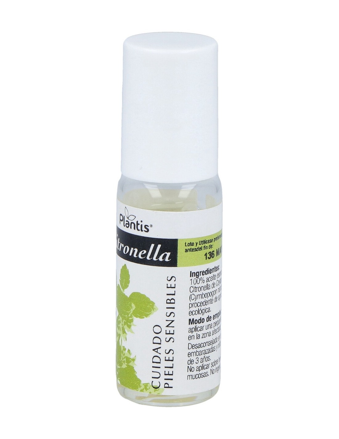 Aceite esencial de citronella en roll-on. Su composición con aceite esencial de citronella de ceylan procedente de agricultura ecológica lo convierte en un aceite ideal para utilizar como repelente de mosquitos en pieles sensibles, puesto que la citronella es una planta que les repelé y este aceite es muy suave con las pieles más delicadas, pero también es perfecto para ayudar a calmar la piel si hay picaduras de insectos, siendo un accesorio imprescindible en los días de verano.