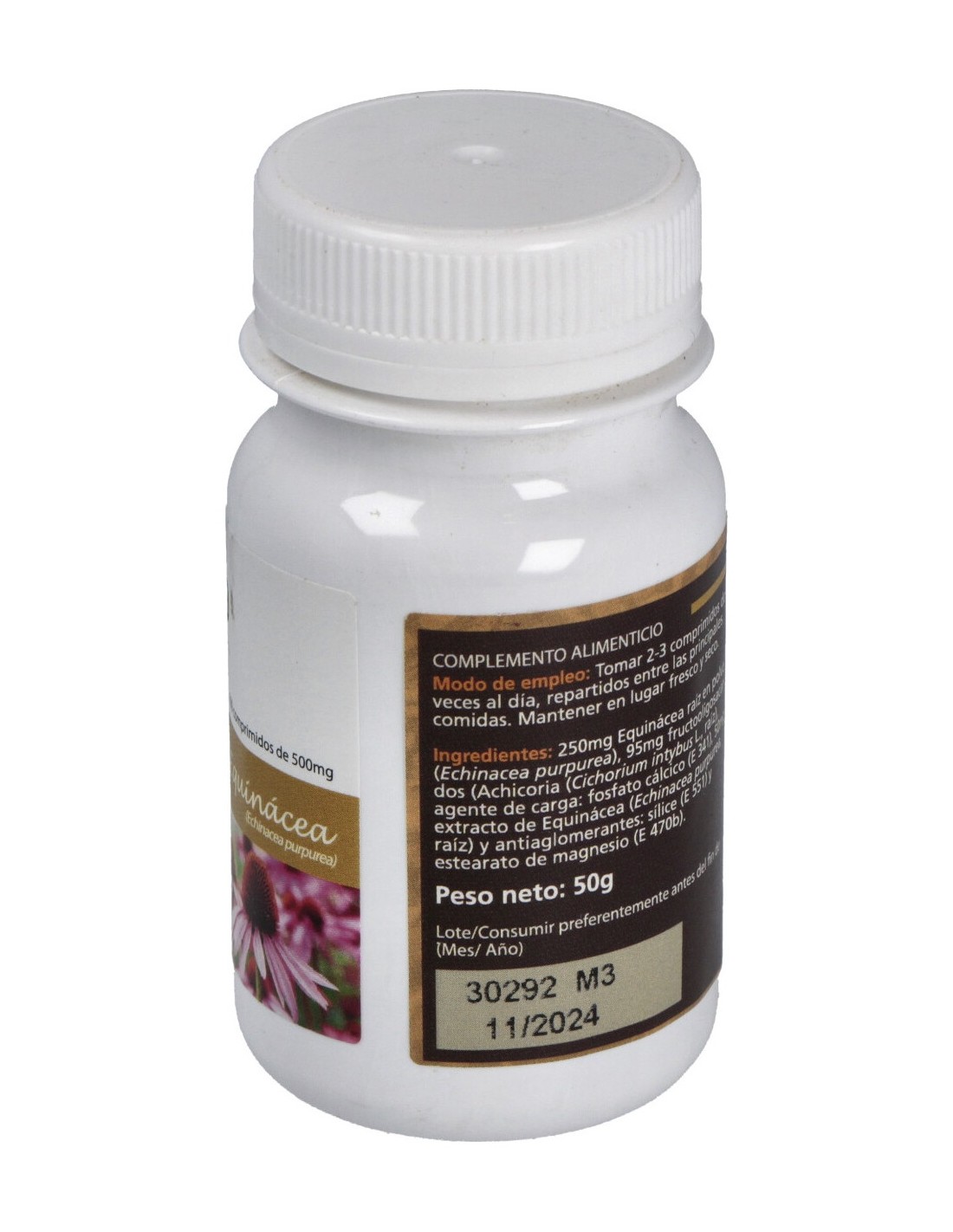 Cada comprimido cuenta con 250mg de Echinacea purpurea; 50mg de extracto estandarizado (equivalente a 250mg de planta); 100mg de maltodextrina y 100mg de celulosa microcristalina.