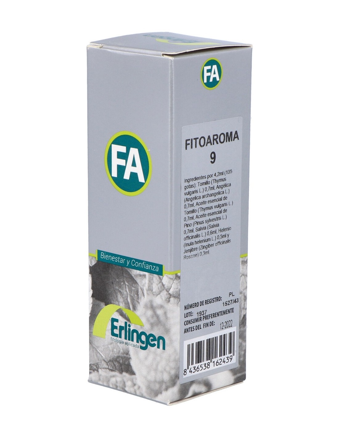 Tomillo (Thymus vulgaris L.), Angélica (Angelica archangelica L.), Aceite esencial de Tomillo (Thymus vulgaris L.), Aceite esencial de Pino (Pinus sylvestris L.), Salvia (Salvia officinalis L.), Helenio (Inula helenium L.) y Jengibre (Zingiber officinalis Roscoe).