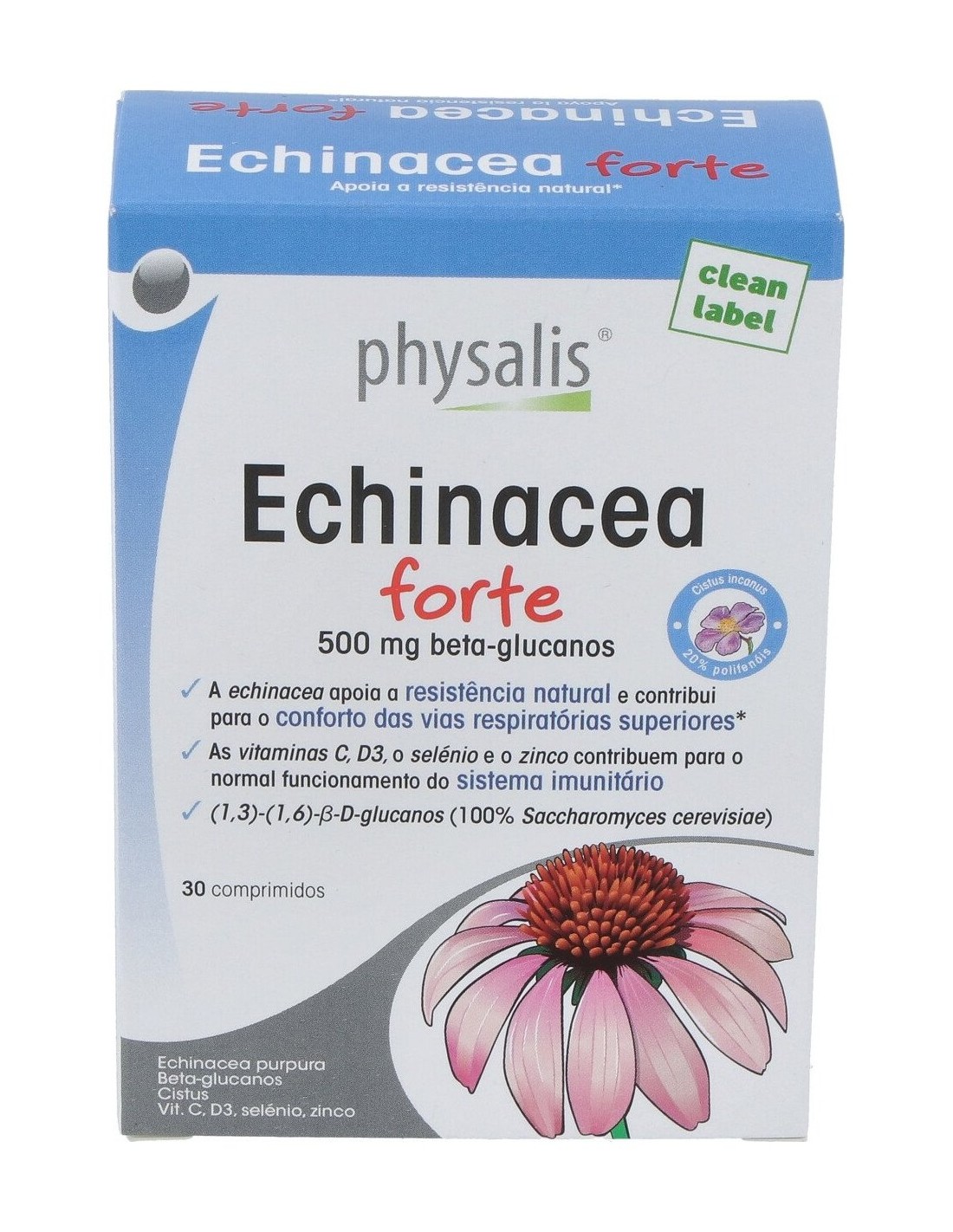 Complejo de 3 plantas con adición de vitamina C y de zinc que apoyan el sistema inmunitario. Contiene echinacea purpúrea que apoya la resistencia y contribuye al confort de las vías respiratorias superiores. El astrágalo contribuye a la defensa del organismo de los agentes externos. Contiene (1,3)-(1,6)-ß-D-glucanos (Yestimun®: 100% Saccharomyces cerevisiae), con un efecto clínicamente probado y extracto de jara con polifenoles.