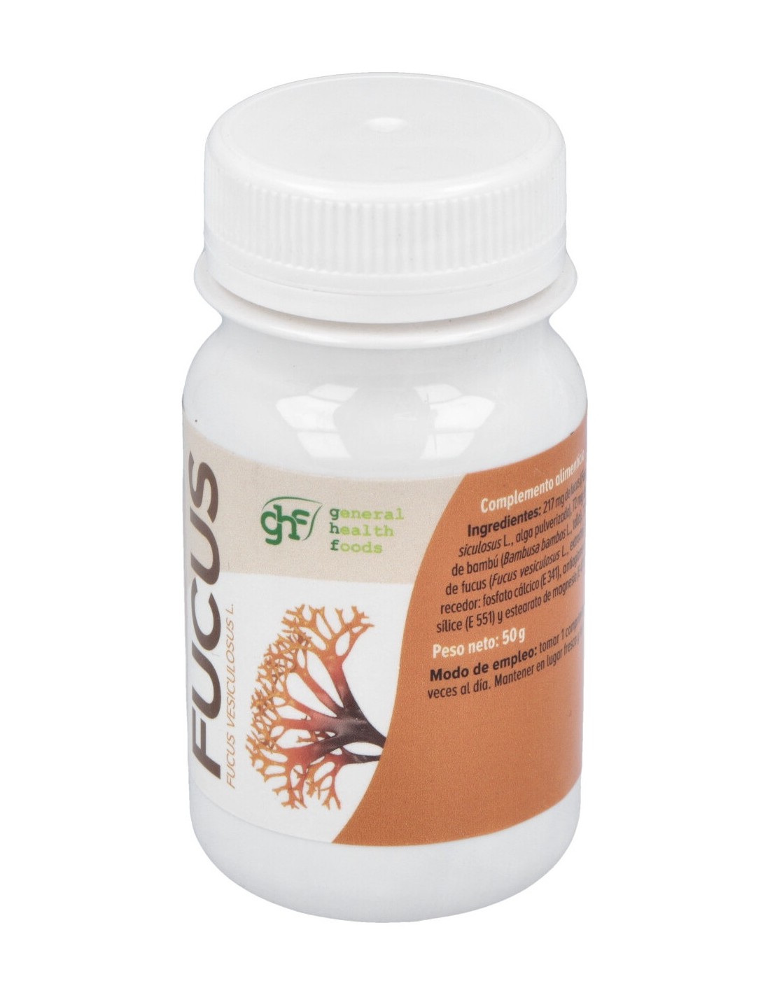 GHF Fucus 500mg son unos comprimidos ricos en fucus que te aportarán todas las propiedades adelgazantes de este activo vegetal, ideal si tienes sobrepeso u obesidad. Dado su alto contenido en yodo, estimulará tu metabolismo a través de la glándula tiroides.