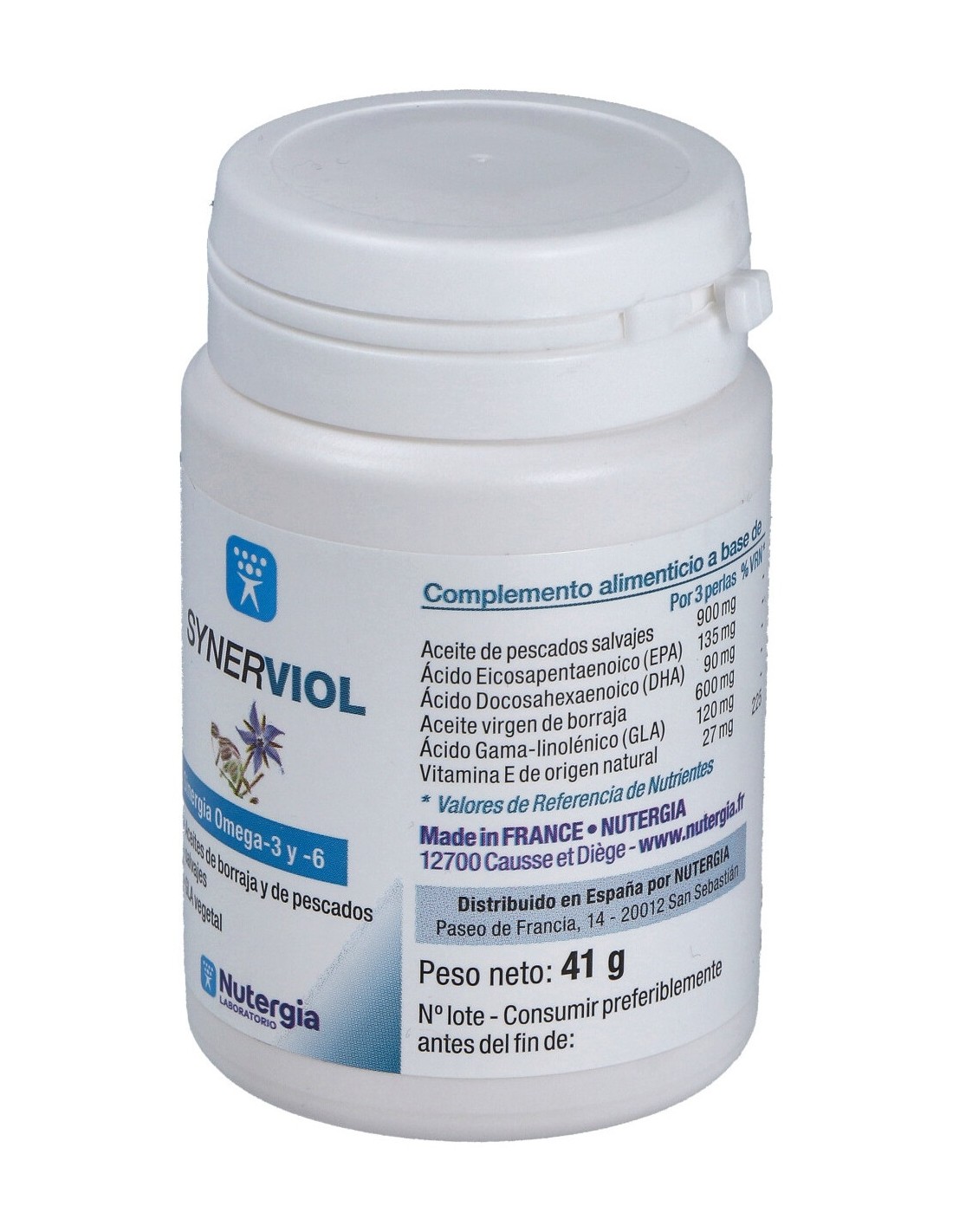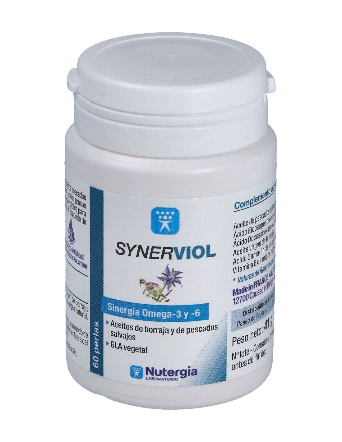 Aceite de pescados salvajes (anchoas y sardinas), aceite de borraja virgen de primera presión en frío, Vitamina E natural, Perla (gelatina de pescado, glicerol).