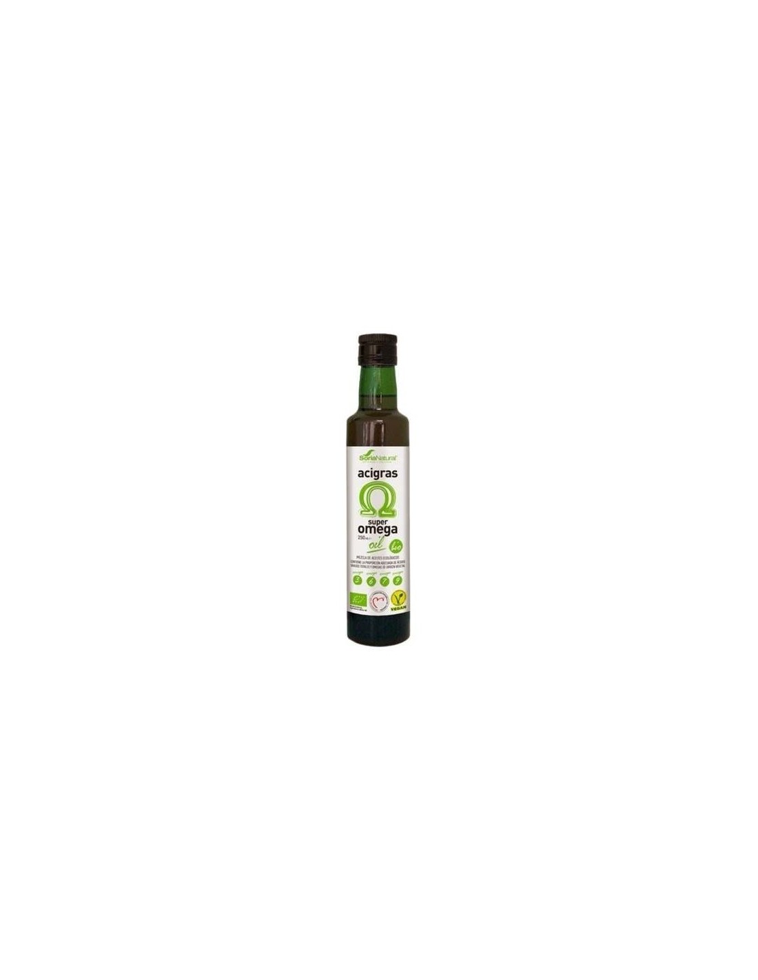 Mezcla de aceites ecológicos. Contiene la proporción adecuada de ácidos grasos totales y omegas de origen vegetal (Omega 3, Omega 6, Omega 7 y Omega 9). Alimento vegano.