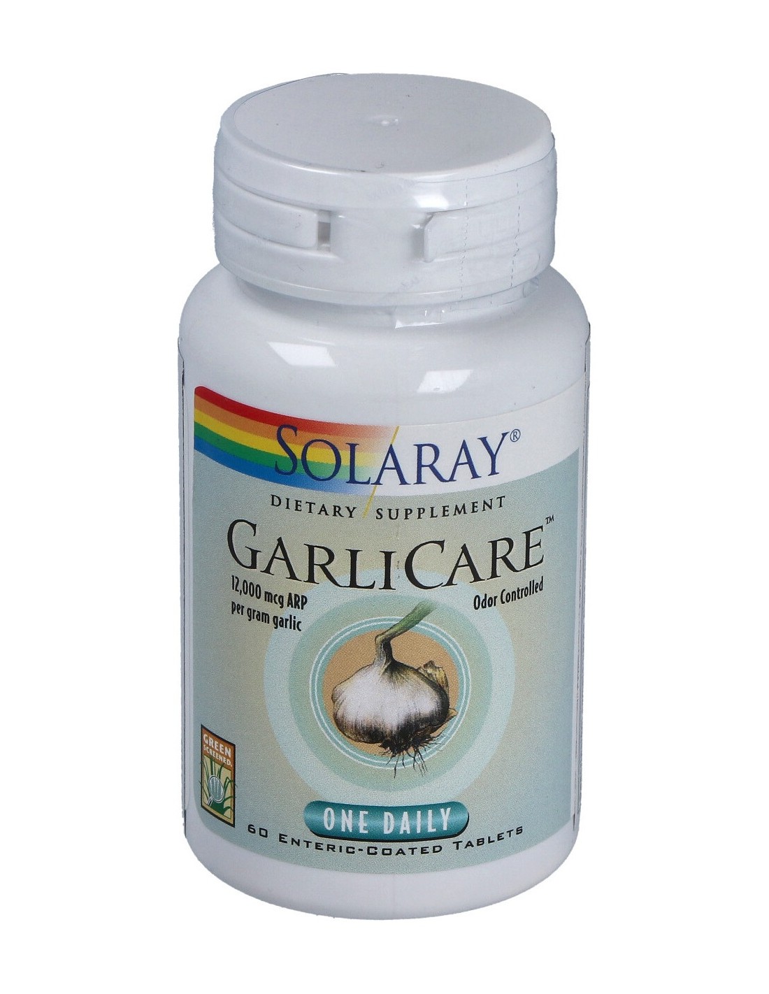 Solaray Garlicare 10.000 MCG es un apoyo nutricional, formulado a base de ajo, que logra prevenir la mayoría de las infecciones, tanto digestivas como respiratorias, favoreciendo el recimiento de la flora baceriana normal. Destruye los microorganismo patógenos que pueden dañar tu organismo.