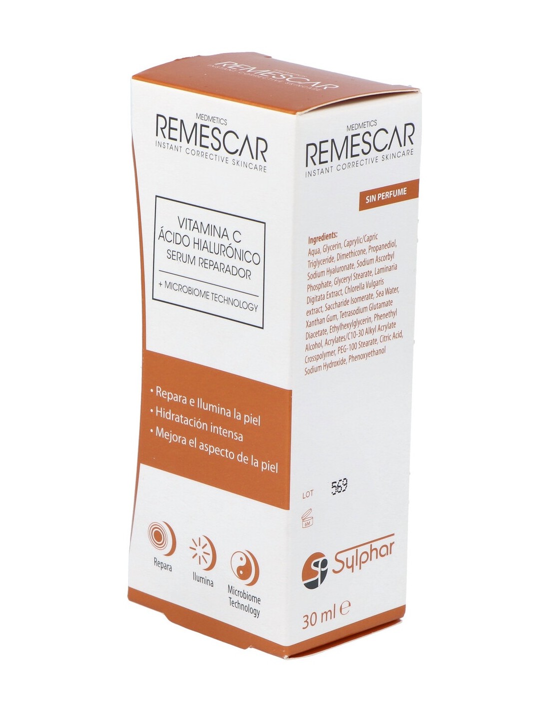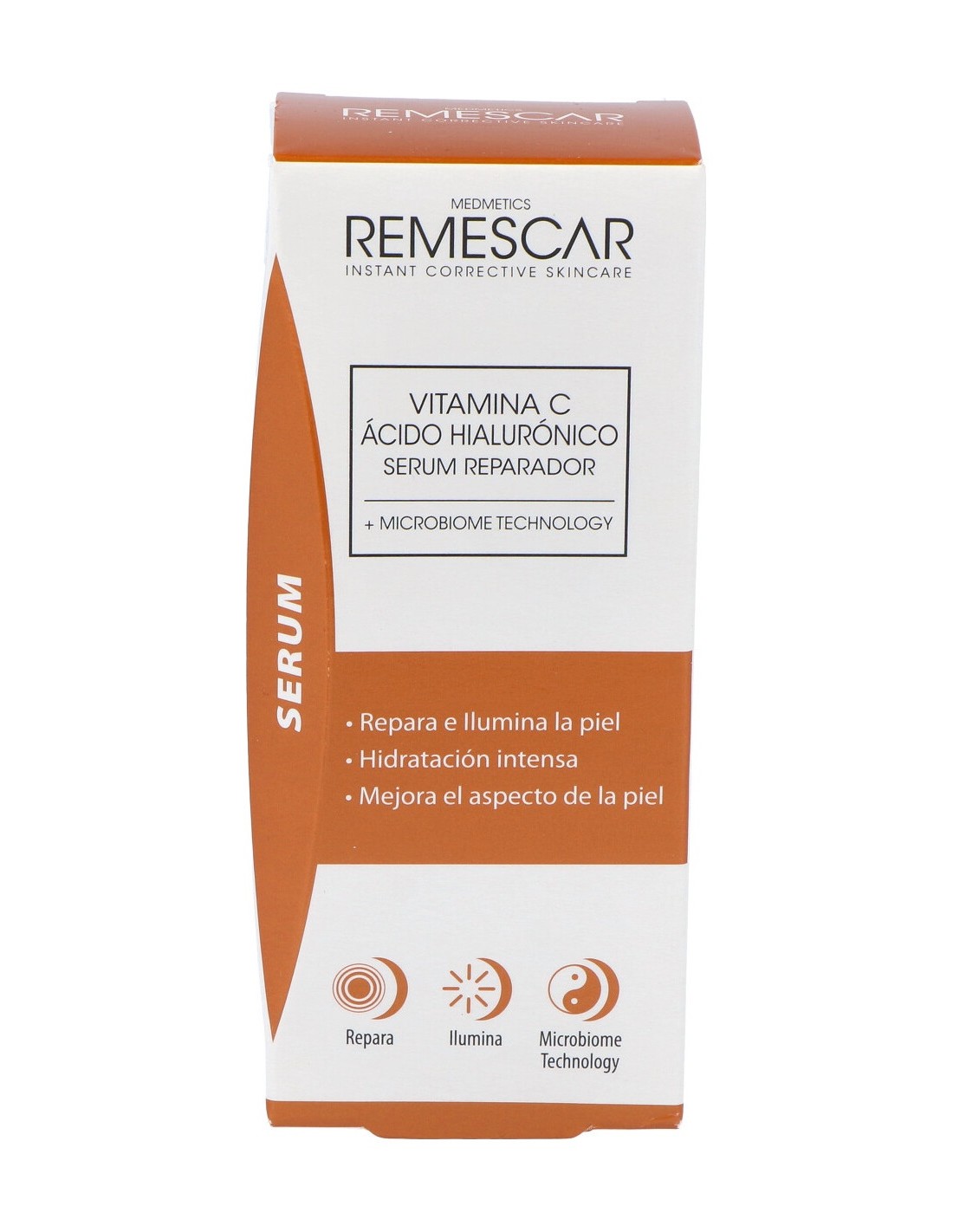 Remescar Serum Vitamina C Ácido Hialurónico 30ml es un sérum reparador que contribuye a hidratar y embellecer la piel a la par que la protege de los rayos UV y la restaura tras la exposición solar. Aunque es apto para todo tipo de pieles, este producto está especialmente indicado para aquellas personas que tienen manchas o arrugas en la piel.