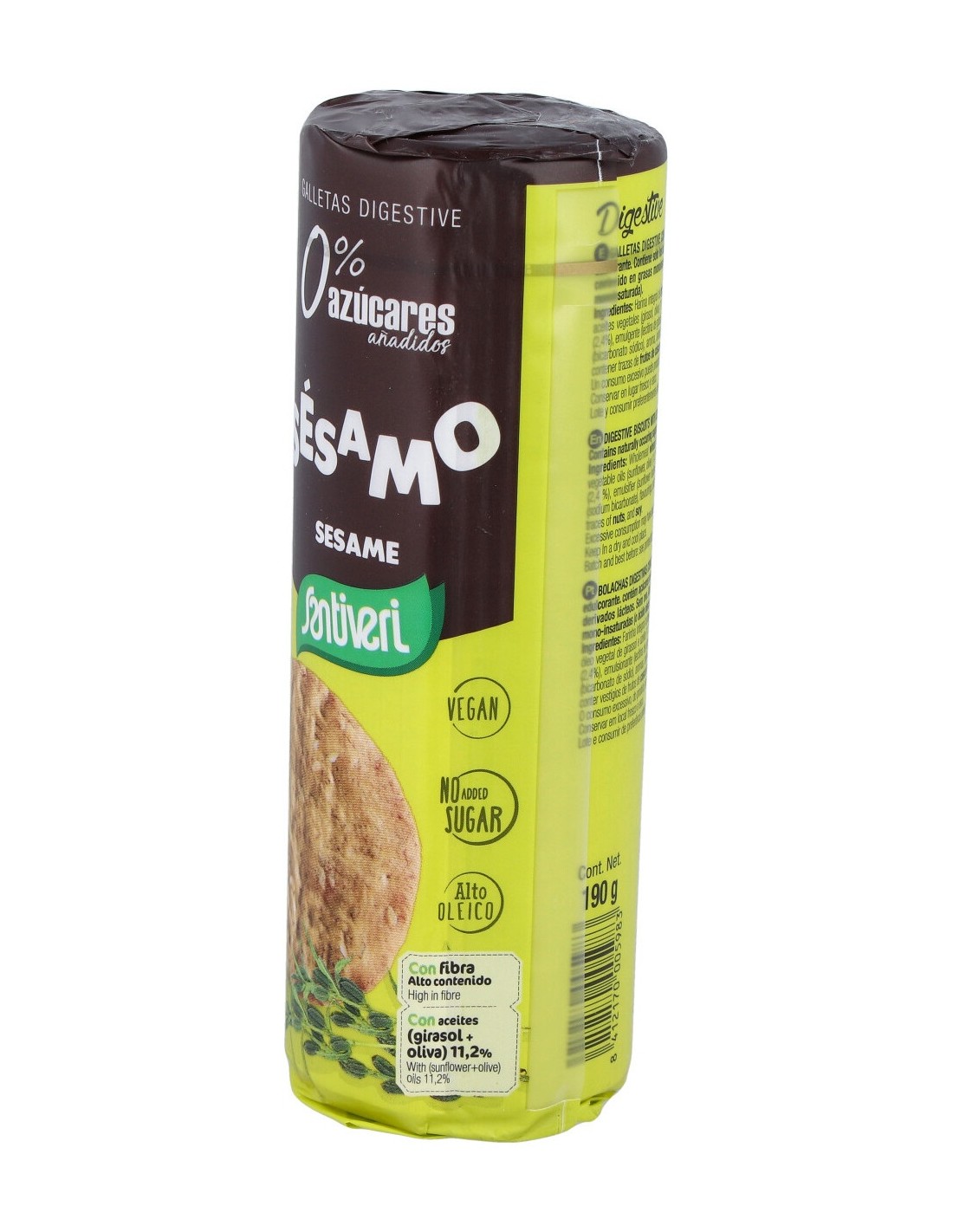 Harina integral de trigo (61,8%), edulcorantes (jarabe de maltitol), aceites vegetales (girasol, oliva) (11,2%), sésamo (4,8%), fructooligosacáridos (2,4%), emulgente (lecitina de girasol), colorante (caramelo natural), gasificante (bicarbonato sódico), aroma, antioxidante (extractos de origen vegetal ricos en tocoferoles) y ácido fólico (ácido pteroilmonoglutámico).