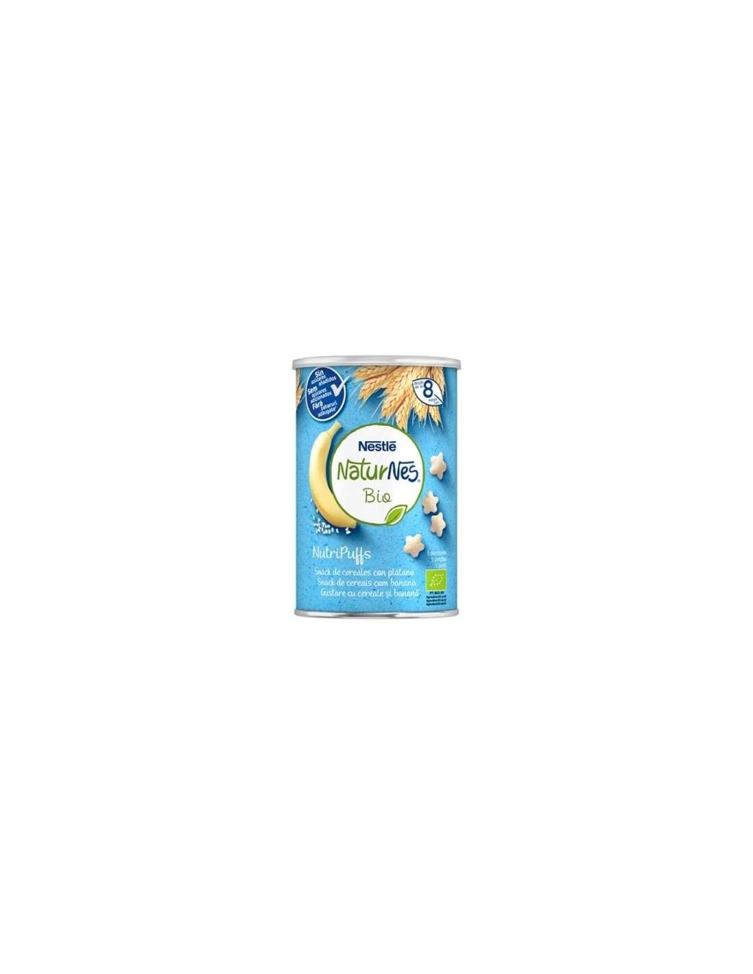 Deliciosos y saludables snacks de arroz y trigo con plátano, elaborados con ingredientes ecológicos, que gracias a su delicioso sabor ayudan a estimular al bebé para que empiece a comer solo. Indicado a partir de 8 meses de edad.