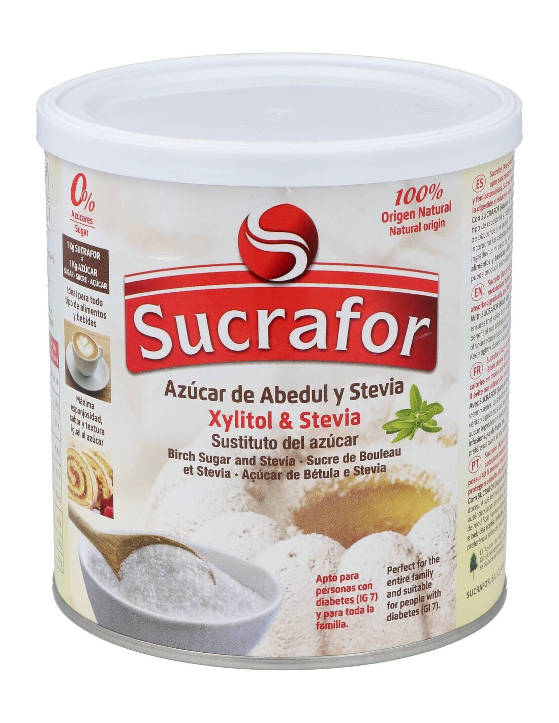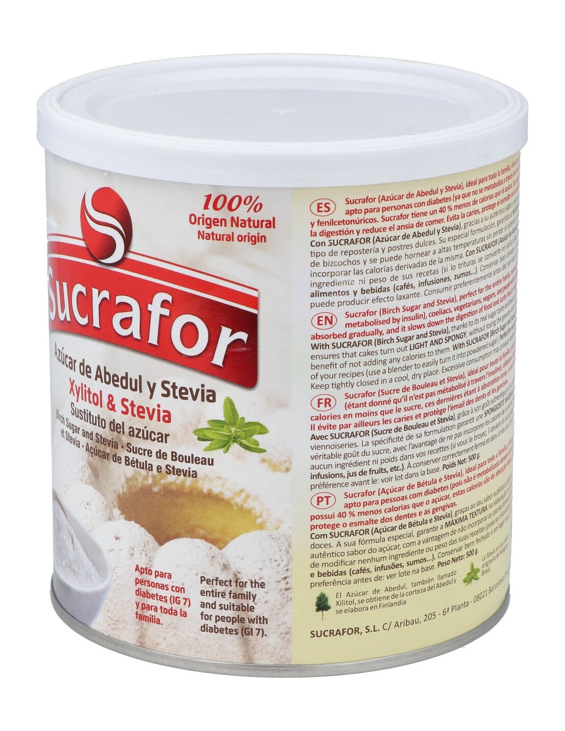 Su formulación a base de azúcar de abedul y extracto de stevia rebaudiana orgánica, sin azúcares añadidos, es apta para diabéticos, celíacos, fenilcetonúricos, dietas de control de peso, niños con problemas de obesidad y para toda la familia. La combinación de estos dos productos naturales lo convierten en una fórmula sana para endulzar cualquier tipo de alimentos y bebidas. Sucrafor es un producto ecológico.