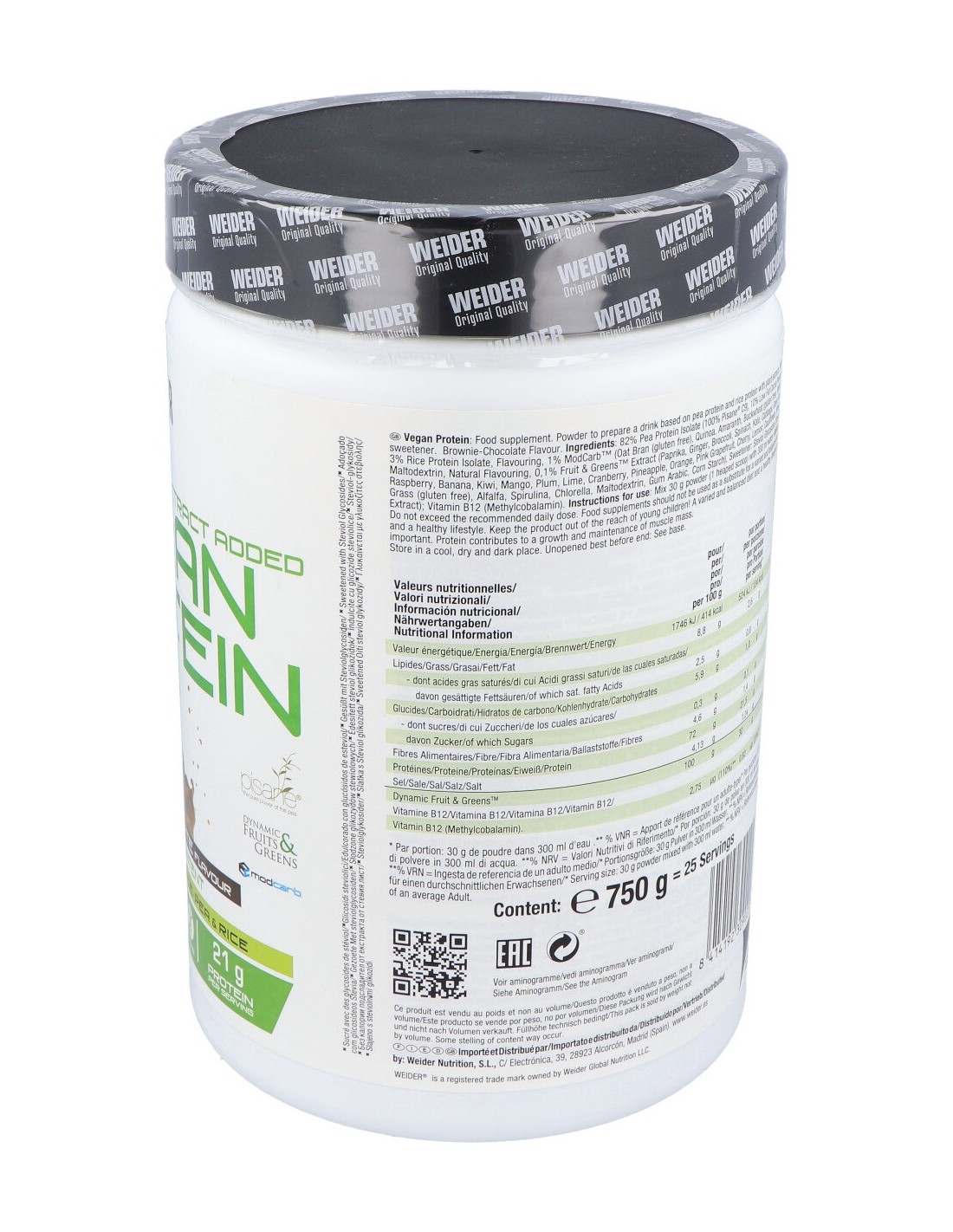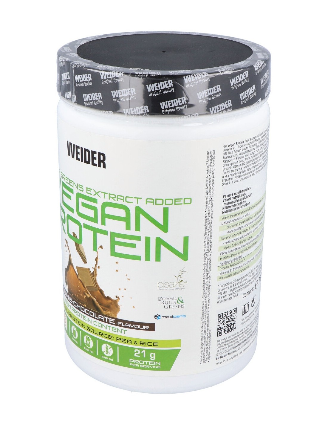 82% Aislado de proteína de guisante (100% Pisane® C9), 10% cacao en polvo bajo en grasa (Theobroma cacao L.), 3% aislado de proteína de arroz, aroma, 2% ModCarb™ (salvado de avena (sin gluten), quinoa, amaranto, alforfón (sin gluten), mijo), aroma natural, 0,1% Fruit & Greens™ extract (paprika, jengibre, brócoli, espinaca, col rizada, col, té verde, frambuesa, plátano, kiwi, mango, ciruela, arándano, piña, naranja, pomelo rosa, cereza, limón, coliflor, trigo germinado (sin gluten), alfalfa, spirulina, chlorella, maltodextrina, goma arábiga, almidón de maíz), edulcorante: glucósidos de esteviol (extracto de stevia): cloruro de sodio.