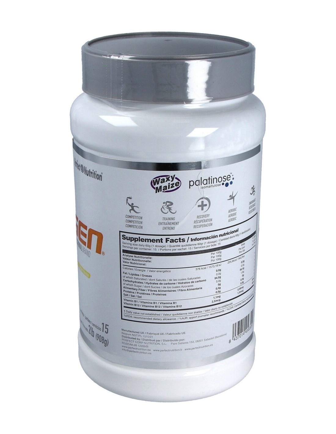 Amilopeptina de maíz (Wazy Maize) (77,13%), isomaltulosa (Palatinose) (9,7%), maltodextrina (9,7 %), ácido cítrico,estabilizante (carboximetilcelulosa, y carragenato), aroma limon, edulcorante E-955 (sucralosa), colorante amarillo E-102, vitamina B1 (tiamina clorhidrato) y vitamina B12 (cianocobalamina)
