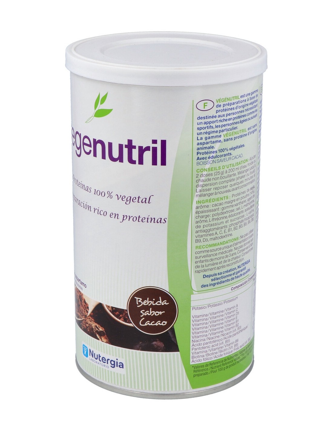 Proteínas de soja, cacao en polvo, agente de carga: polidextrosa, metionina, sal, sabor, treonina, acesulfato de potasio y sucralosa, l-valina, antiaglomerante: dióxido de silicio: vitaminas C, B3, E, B5, B2, B6, B1, A, B9, B8, D3, maltodextrina.