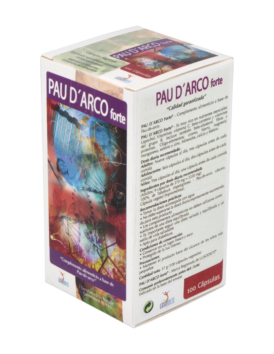 Suplemento nutricional basado en el extracto fitoactivo de pau d´arco o lapacho, árbol de gran porte de Sudamérica. La composición es rica en nutrientes esenciales, oligoelementos (Calcio, Cobre, Cobalto, Hierro, Magnesio, Manganeso, Selenio, y Zinc), lapachol, xiloidina, vitaminas del complejo B, C y E. El conjunto de componentes resulta en acción depuradora, desintoxicante, regeneradora y revitalizadora de la actividad celular. Producto apto para vegetarianos con sello de fabricado con extractos vegetales