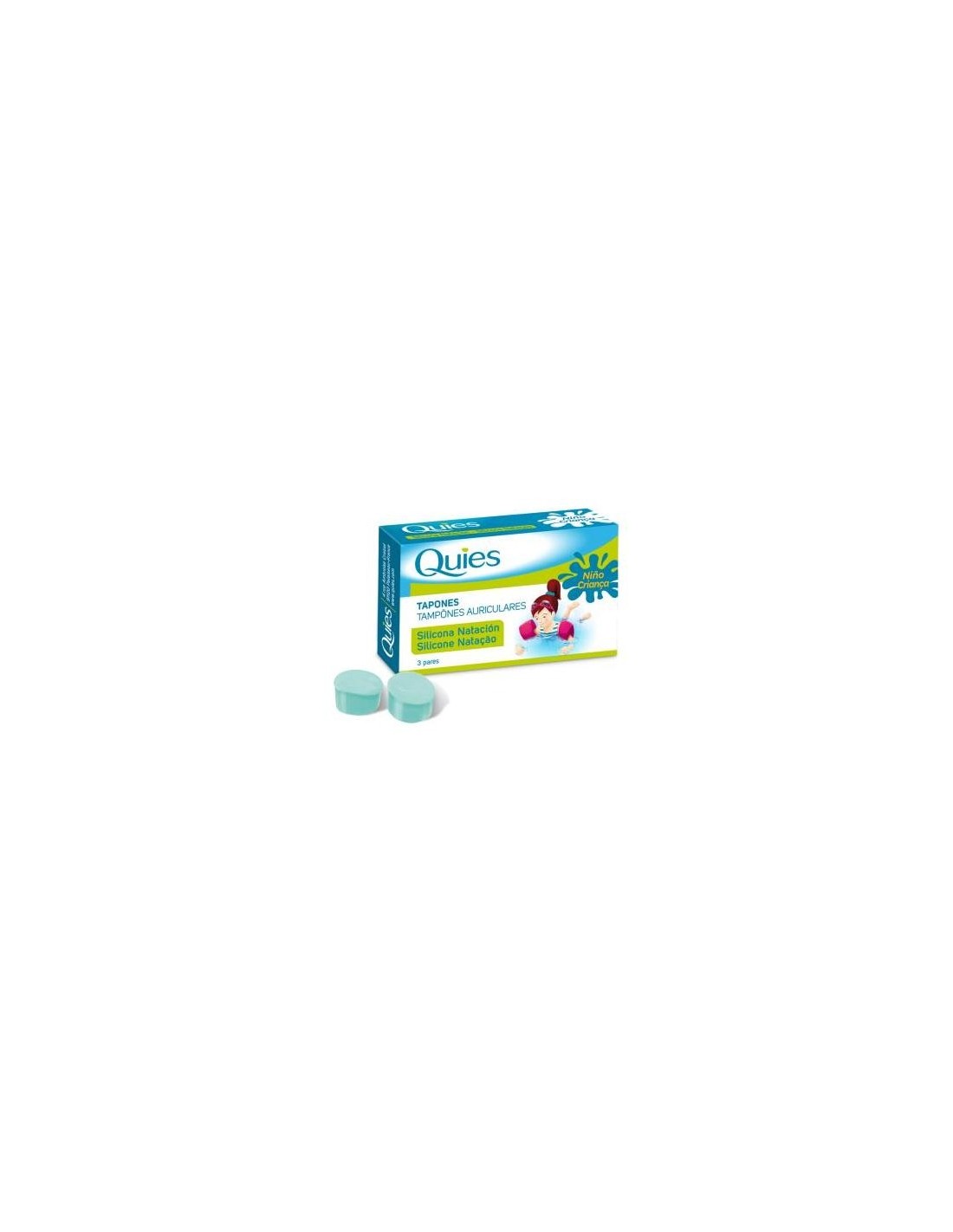 Quies tapón oído silicona natación infantil es una protección auditiva especialmente indicada para mantener los oídos de los más pequeños libres de agua y líquidos. Se adaptan perfectamente a la forma anatómica del oído, sin presionar ni producir dolor.