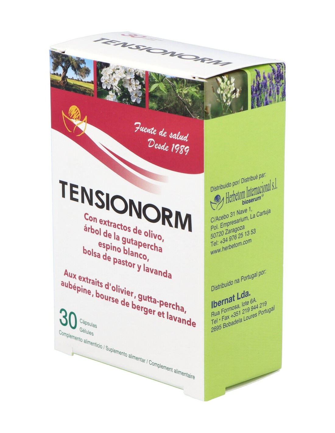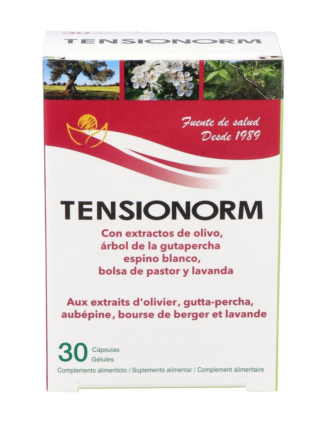 Nutracéutico con plantas que contribuyen a una normal presión arterial como el olivo y el espino blanco.