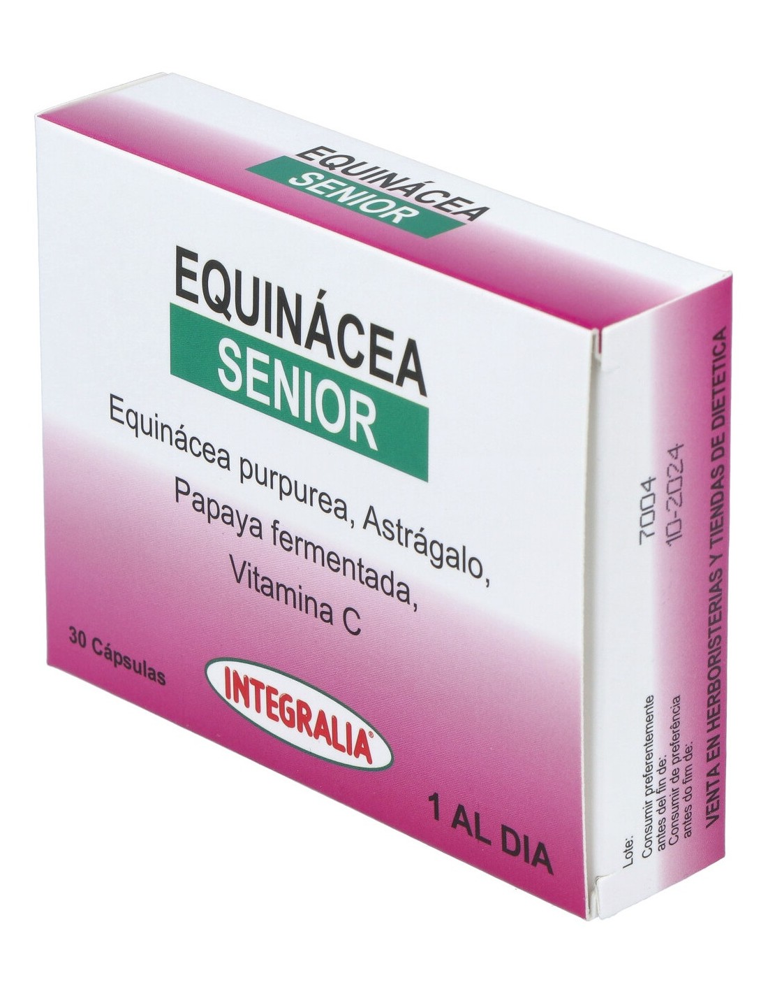 Tomar 1 cápsula de Equinácea Senior al día. Los complementos alimenticios deben tomarse dentro de una dieta variada y equilibrada y como parte de un estilo de vida activo.