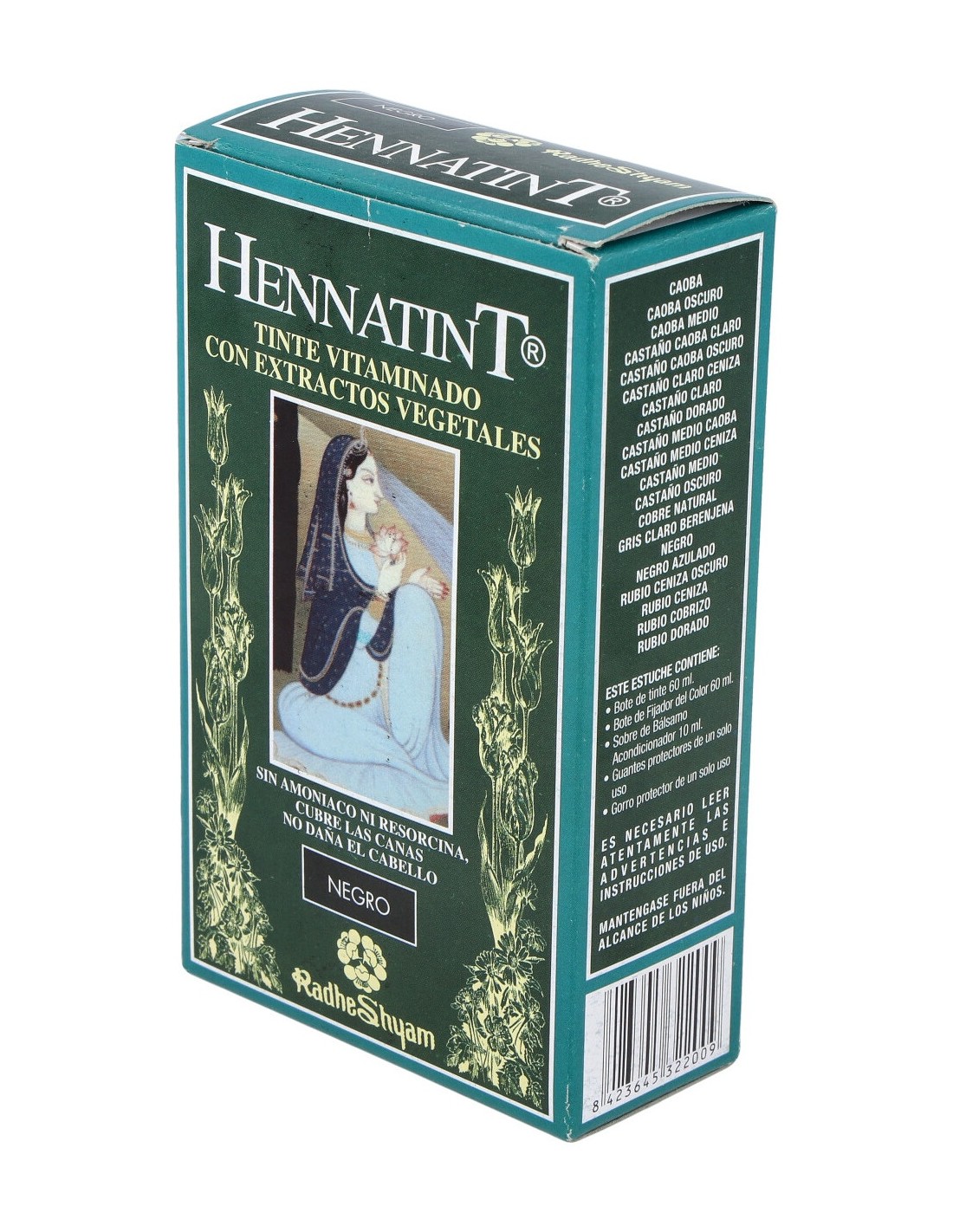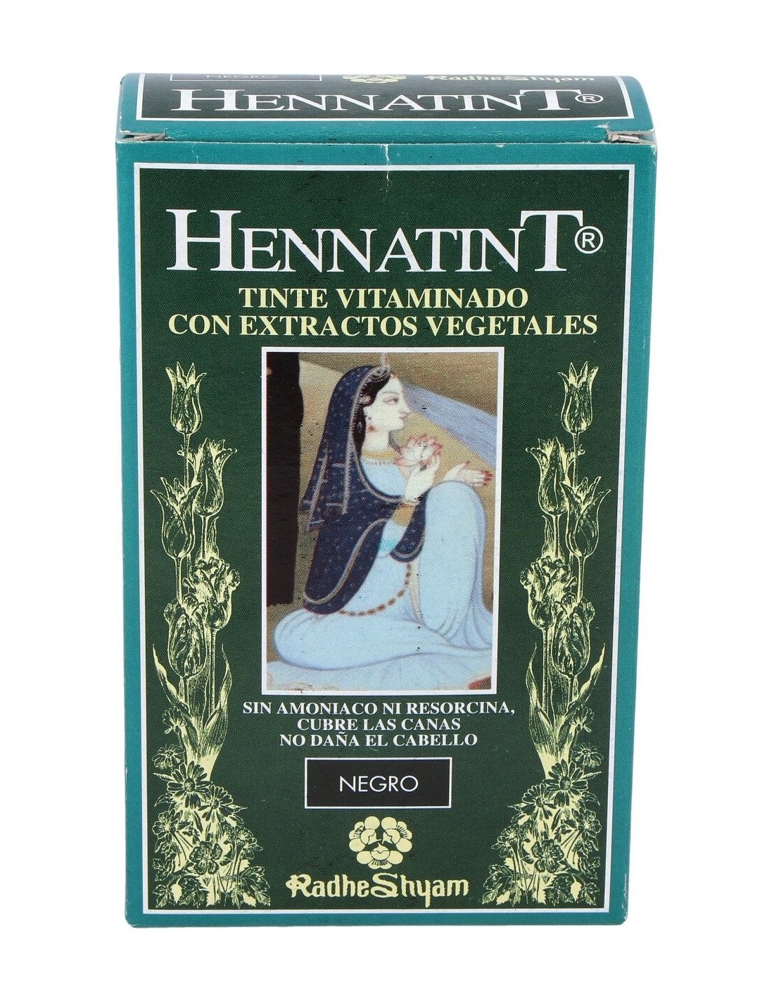 Tinte semipermanente sin amoniaco que cubre las canas desde la primera aplicación. Da al pelo una coloración y un brillo natural.HENNATINT NEGRO 60ml. de RADHE SHYAM