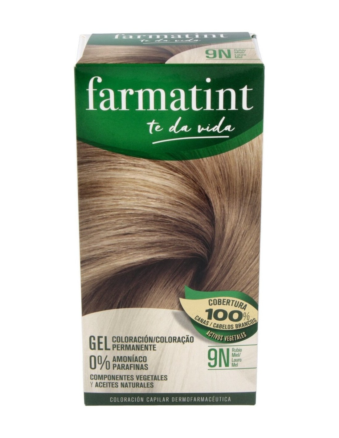 Farmatint 9N Rubio Miel está indicado para las personas que quieran cubrir sus canas de manera efectiva, así como para aquellas que quieran cambiar de color de pelo. Su fórmula, testada dermatológicamente, no contiene ingredientes dañinos para el cabello, lo que ofrece un resultado óptimo de la coloración con un cabello brillante y sano, de intenso color rubio miel.