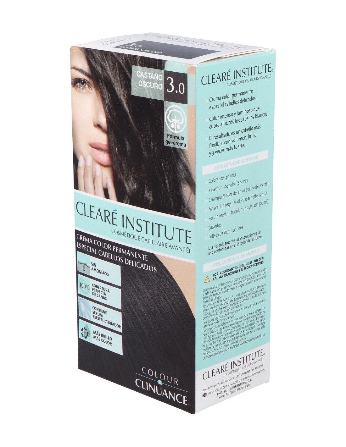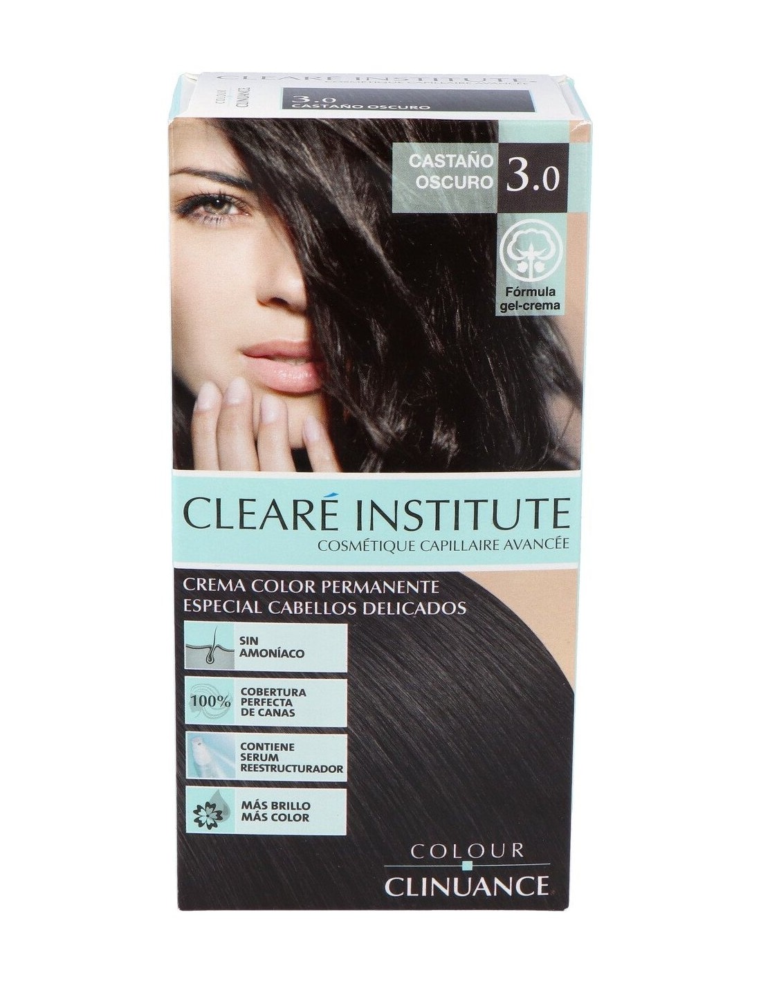 Cosmética capilar farmacéutica fabricada con ingredientes de origen natural. Ayuda a conseguir un cuero cabelludo más sano y una fibra capilar fortalecida gracias a los los extractos vegetales orgánicos y una fórmula libre de parabenos, aceites minerales y siliconas.COLOUR CLINUANCE 3.0 castaño oscuro cab. delicados de CLEARE INSTITUTE