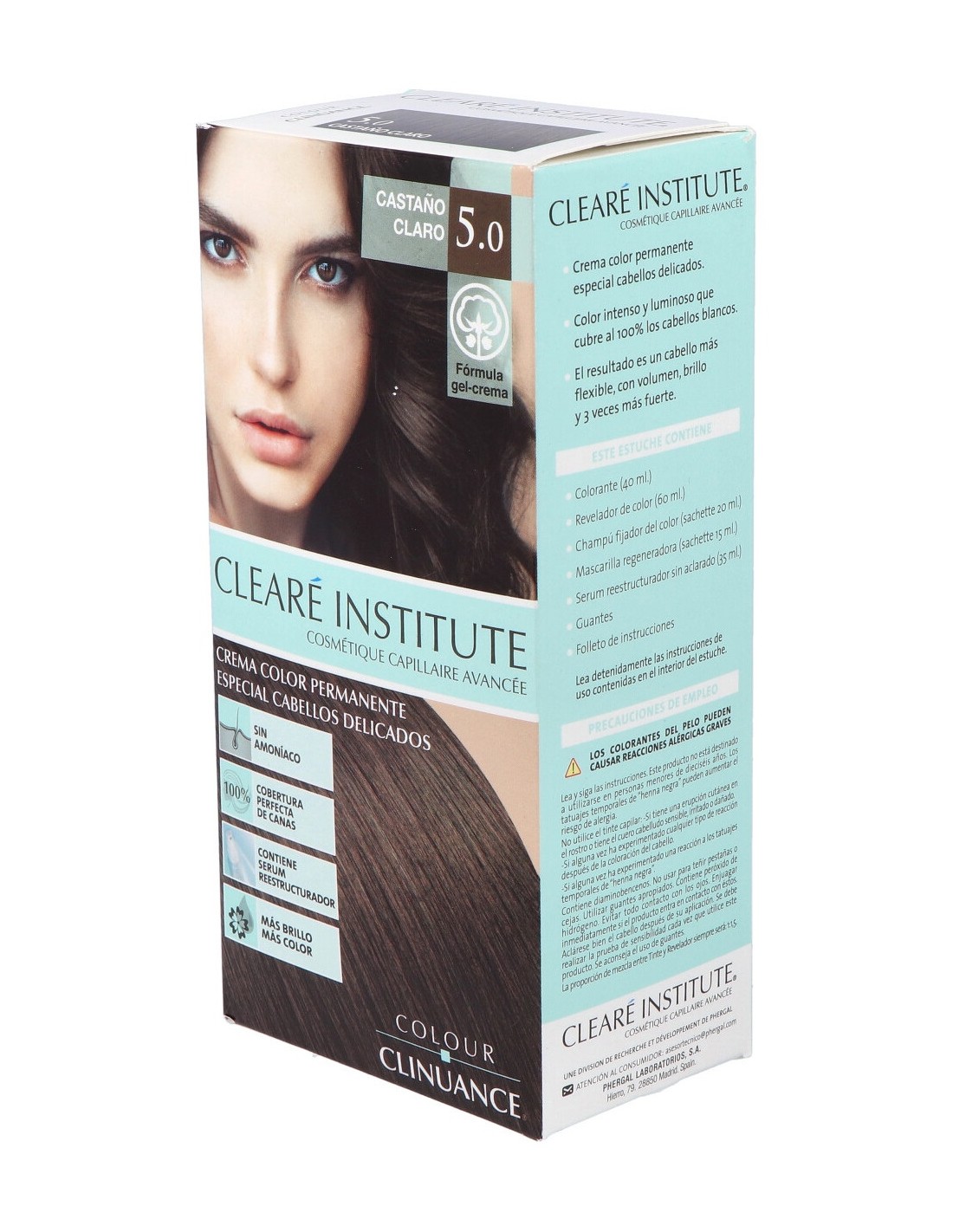 Cosmética capilar farmacéutica fabricada con ingredientes de origen natural. Ayuda a conseguir un cuero cabelludo más sano y una fibra capilar fortalecida gracias a los los extractos vegetales orgánicos y una fórmula libre de parabenos, aceites minerales y siliconas.COLOUR CLINUANCE 5.0 castaño claro cab. delicados de CLEARE INSTITUTE