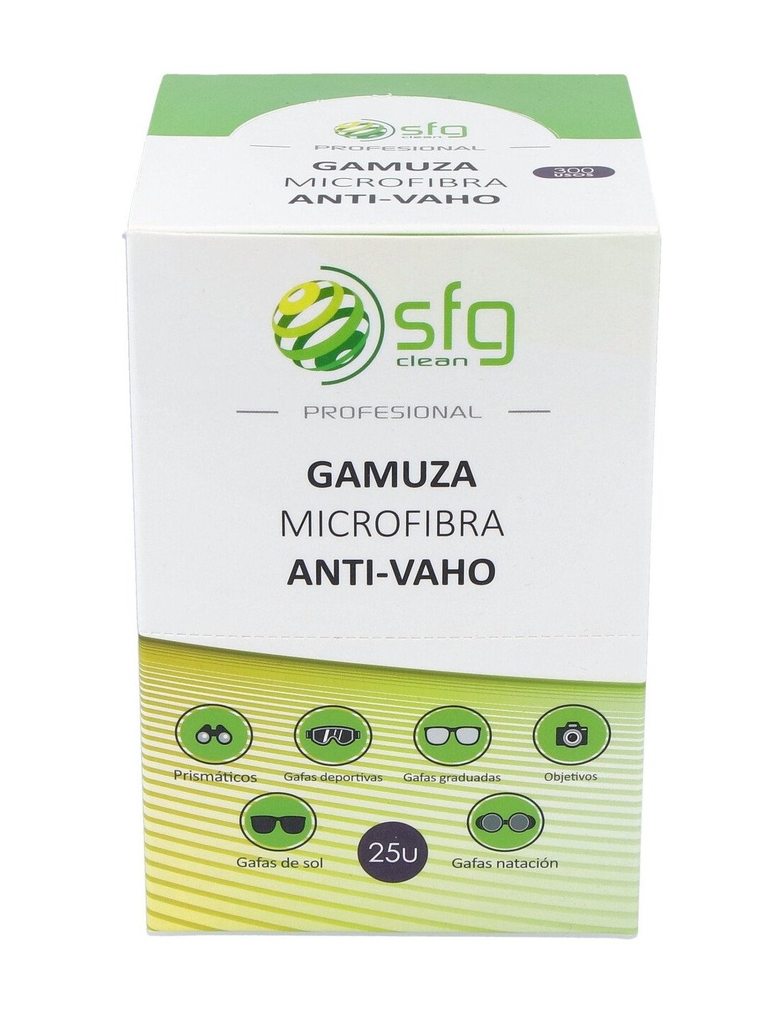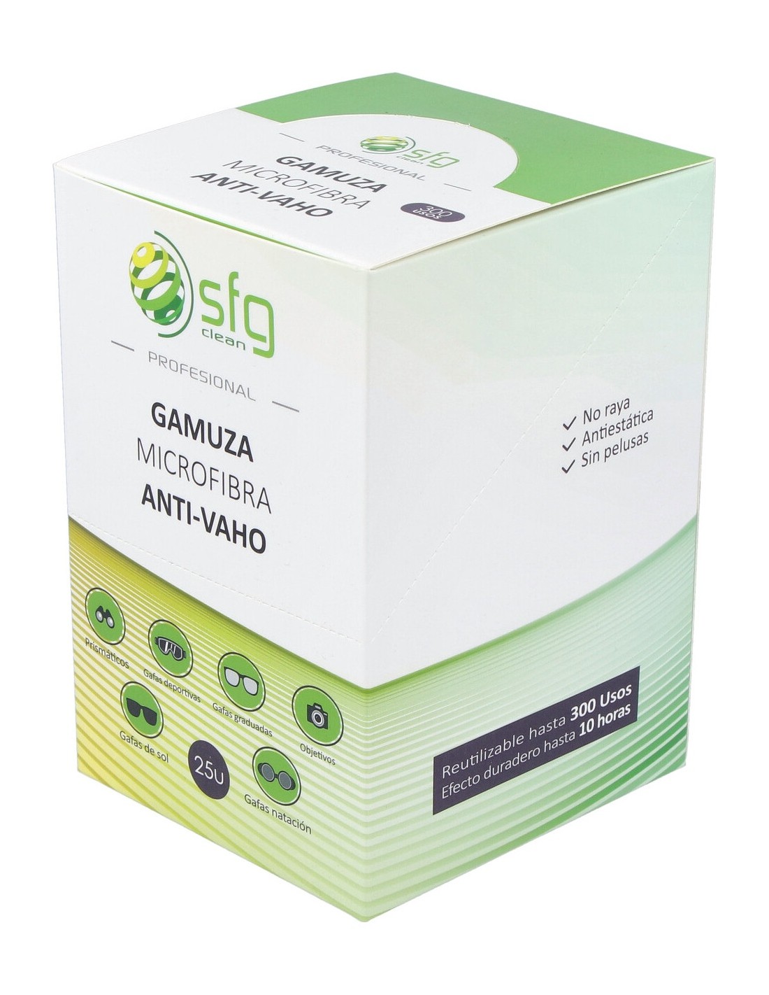 Gamuza profesional para evitar la condensación en la superficie de productos ópticos (prismáticos, gafas deportivas, gafas graduadas, objetivos, gafas de sol, gafas de natación), formando una capa anti-vaho que evita el problema de niebla. Reutilizable hasta 300 usos. No raya. Antiestática y sin pelusas. Con efecto duradero hasta 10 horas.