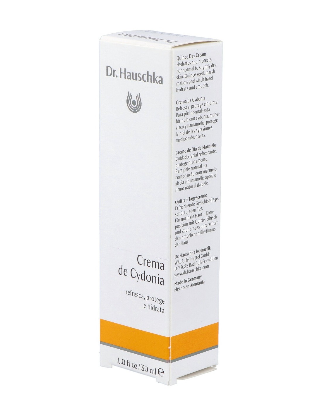 Dr. Hauschka Crema De Dia De Cydonia 30g crema de día con propiedades refrescantes e hidratantes, especialmente formulada con Cydonia, Jojoba, Albaricoque y Aguacate. Protege la piel de las agresiones medioambientales y equilibra su nivel de hidratación. La Cera de Cydonia forma una suave capa que protege y mantiene la hidratación sin bloquear los poros.