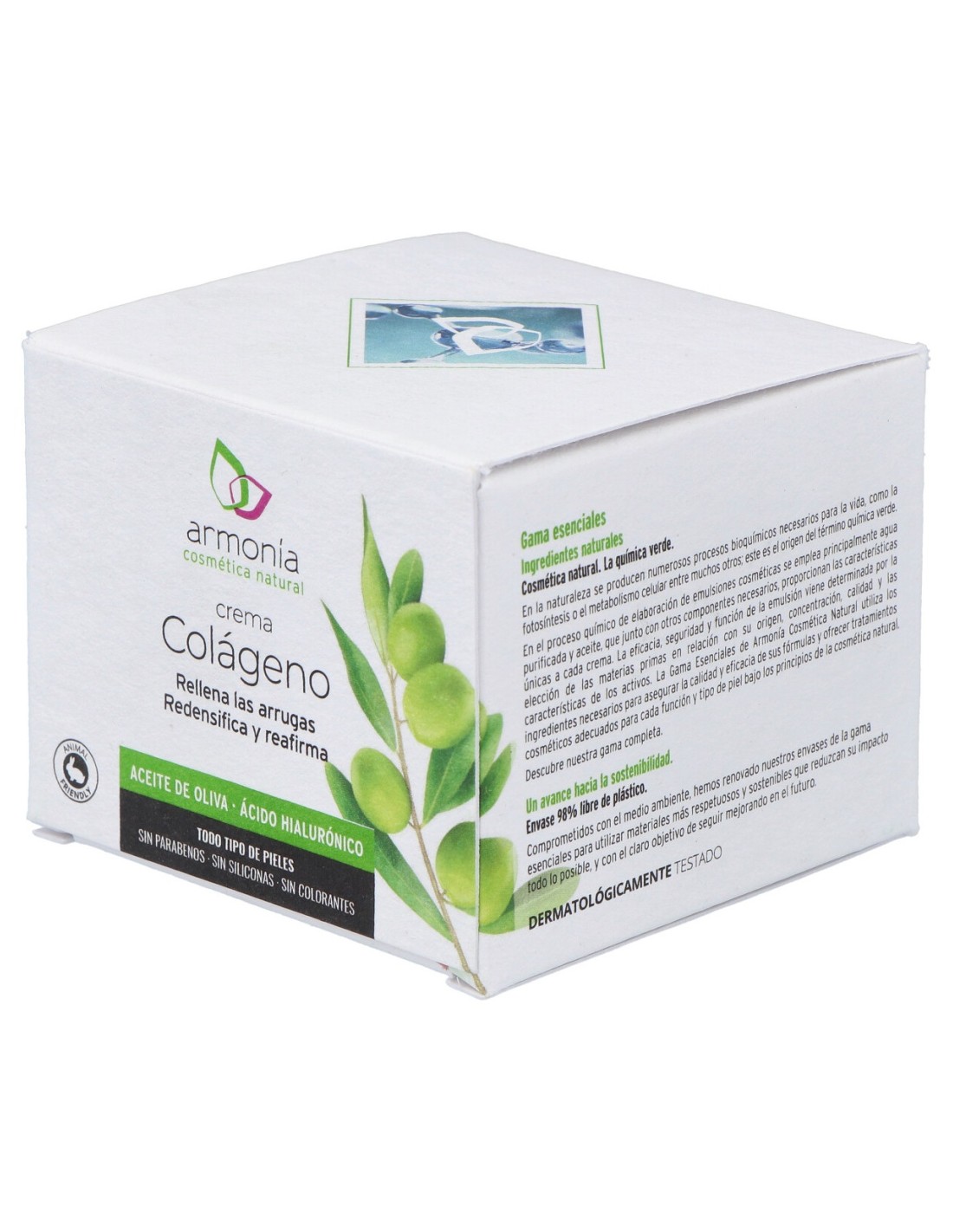 Crema facial hidratante elaborada a base de colágeno para el cuidado e hidratación de la piel. Aporta flexibilidad y ayuda a prevenir la aparición de finas líneas de expresión. Enriquecida con aceite de oliva y ácido hialurónico, favorece el relleno de la piel y aporta nutrientes y vitaminas que actúan como antioxidantes. Contribuye a proteger la piel de las agresiones externas. Ayuda a remodelar la piel mediante la retención de agua, brinda volumen y una textura suave y lisa. Indicado para todo tipo de piel.