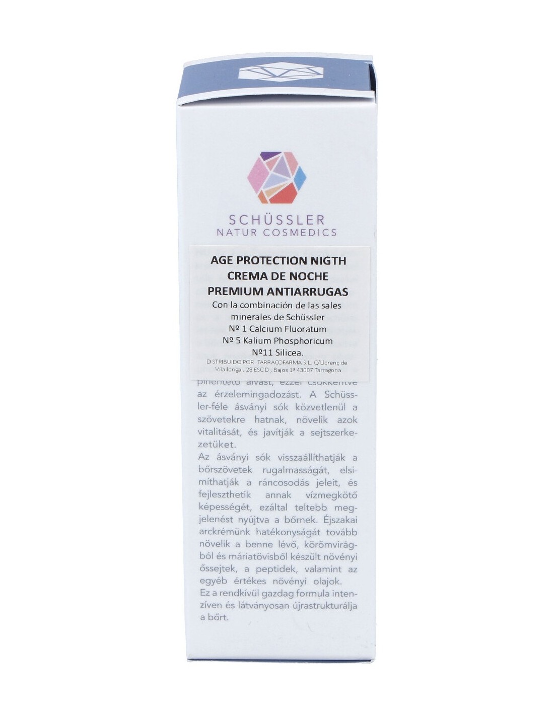 "Schüssler Age Protection Night Crema Premium 50ml es una crema antiedad de noche compuesta por ingredientes naturales: sales minerales del Dr Schüssler 1, 5 y 11 y otros ingredientes 100% orgánicos. Sus ingredientes colaboran con la regeneración de la piel, la mejora de la circulación sanguínea y retrasan el envejecimiento de la piel.