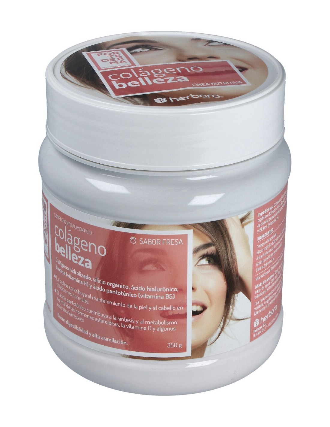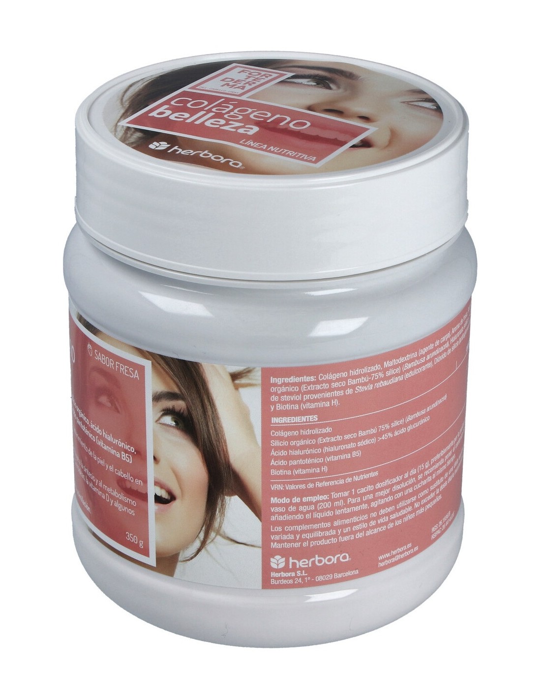 Colágeno hidrolizado 10 g, Silicio orgánico (Extracto seco Bambú-75% sílice) (Bambusa arundinacea) 57 mg (42,75 mg Silicio), Ácido hialurónico (hialuronato sódico) >45% ácido glucurónico 25 mg, Ácido pantoténico (vitamina B5) 6 mg, Biotina (vitamina H) 50 mcg. Maltodextrina (agente de carga), aroma de fresa, remolacha polvo (colorante rojo), glucósidos de steviol provenientes de Stevia rebaudiana (edulcorante) y dióxido de silicio (antiaglomerante).