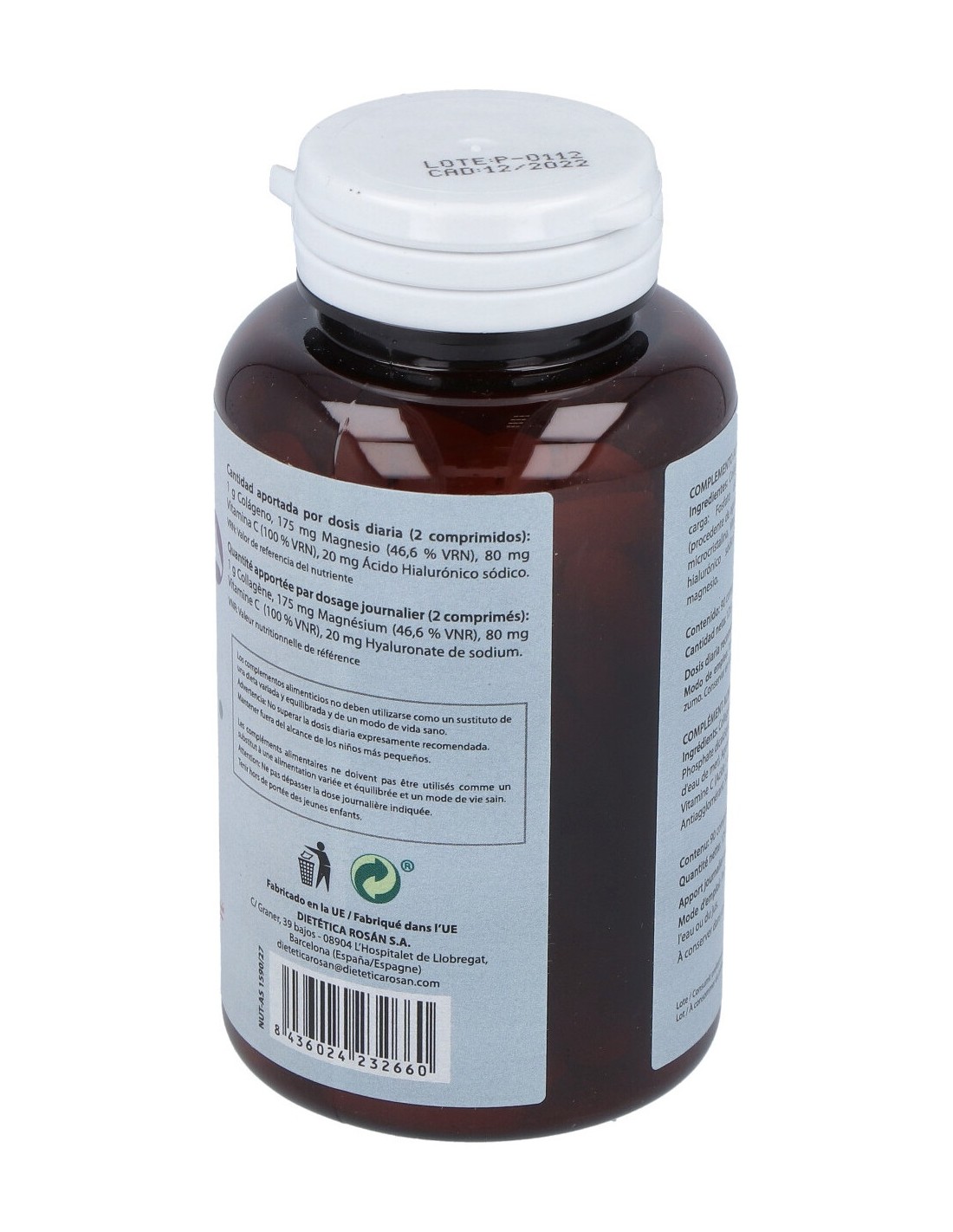 Colágeno marino hidrolizado, Hidróxido de Magnesio (procedente de agua de mar), Vitamina C (Ácido L-Ascórbico), Ácido Hialurónico sódico.