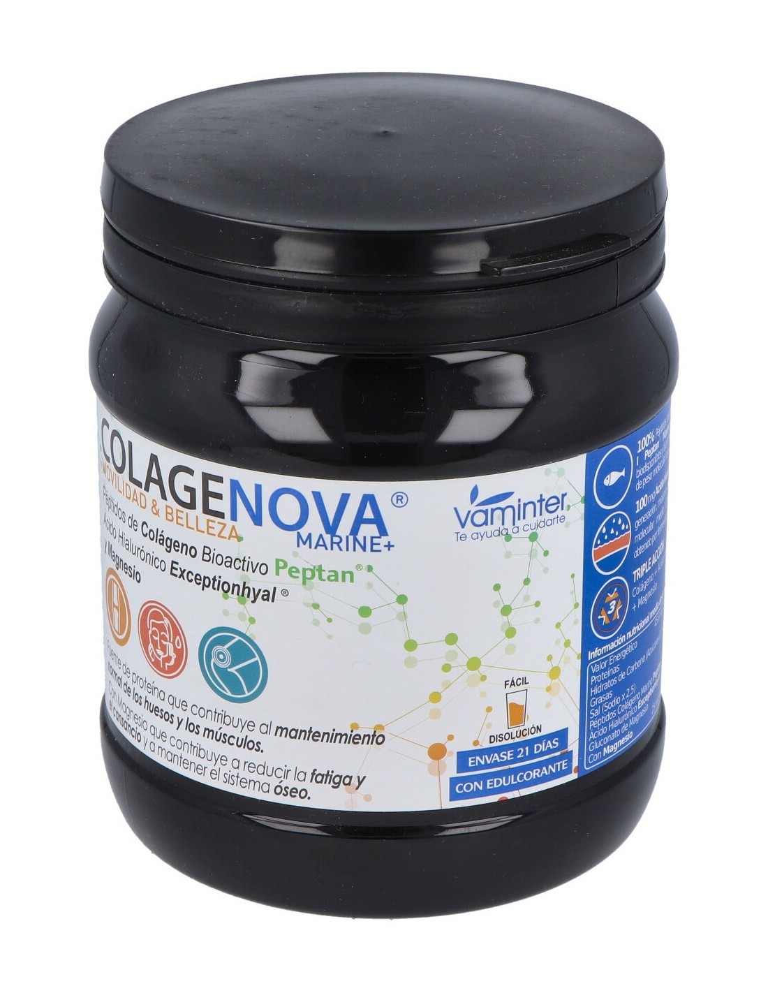 Complemento alimenticio a base de péptidos de colágeno hidrolizado puro procedentes de pescado con ácido hialurónico de origen vegetal y gluconato de Magnesio. Contribuye al mantenimiento del sistema óseo y muscular.