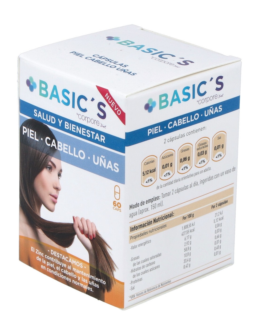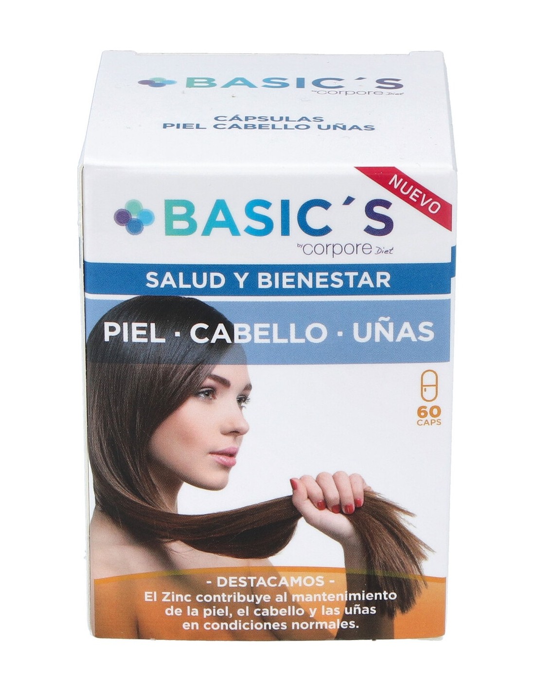 Complemento alimenticio en forma de cápsulas, elaborado a base de levadura de cerveza, germen de trigo, zinc, y vitaminas A, C y E, que contribuye a nutrir, fortalecer y reparar la piel, cabello y uñas.