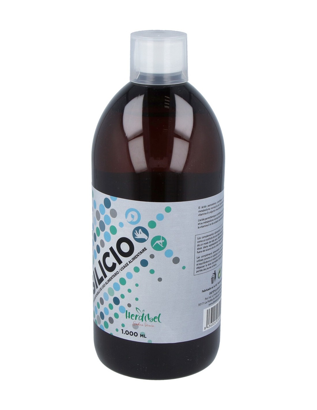 Complemento alimenticio líquido formulado a base de silicio orgánico. Bote de 1 litro. Favorece el correcto mantenimiento de huesos y articulaciones. Se usa tradicionalmente en el cuidado de uñas, dientes y músculos. Indicado para personas de todas las edades.