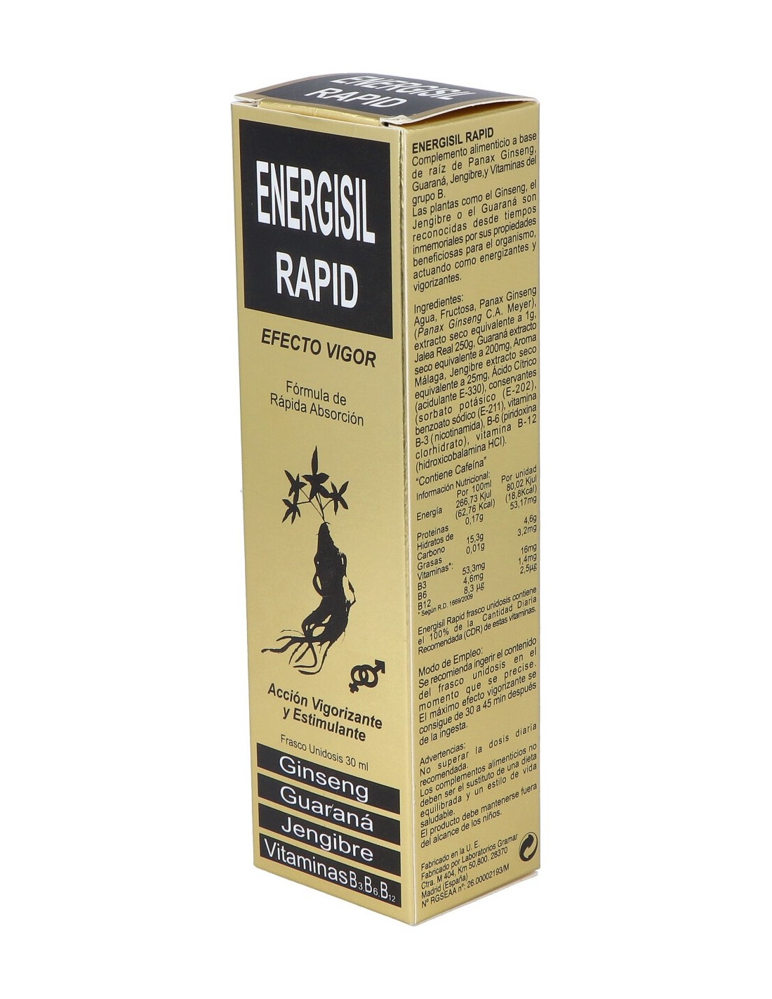 Energisil Rapid Efecto Vigor 30ml es un complemento alimenticio que ayuda a aumentar la energía y vitalidad en momentos de cansancio, fatiga y estrés.