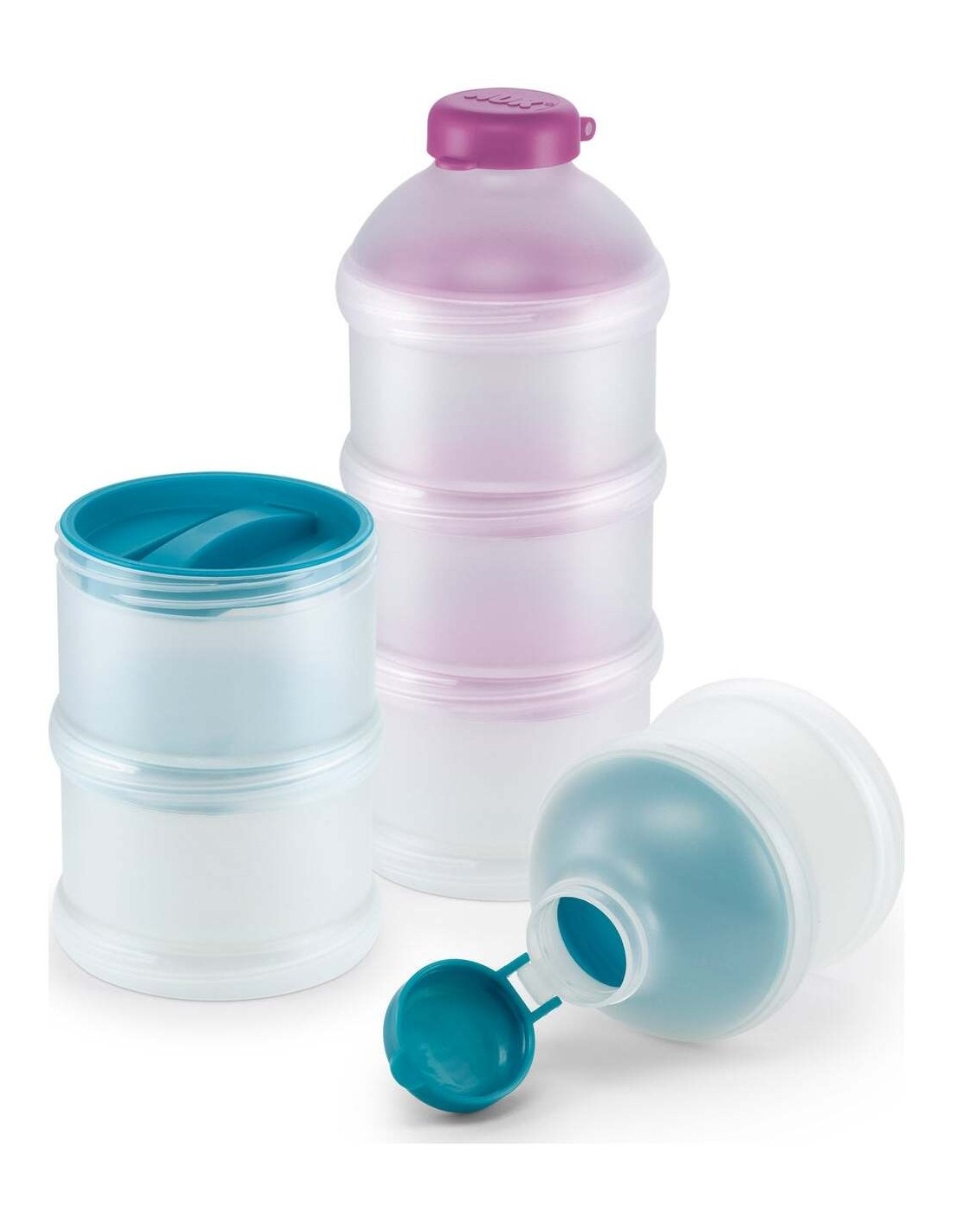 Nuk dosificador ofrece una cómoda preparación para que puedas tener la cantidad perfecta de alimentación para tu pequeño. Con un diseño atractivo en varios colores, y un cómodo uso, los contenedores enroscables del Nuk dosificador son cómodos de utilizar y limpiar. Todos tienen su cierre individual, y cumplen con la regulación de seguridad alimentaria.