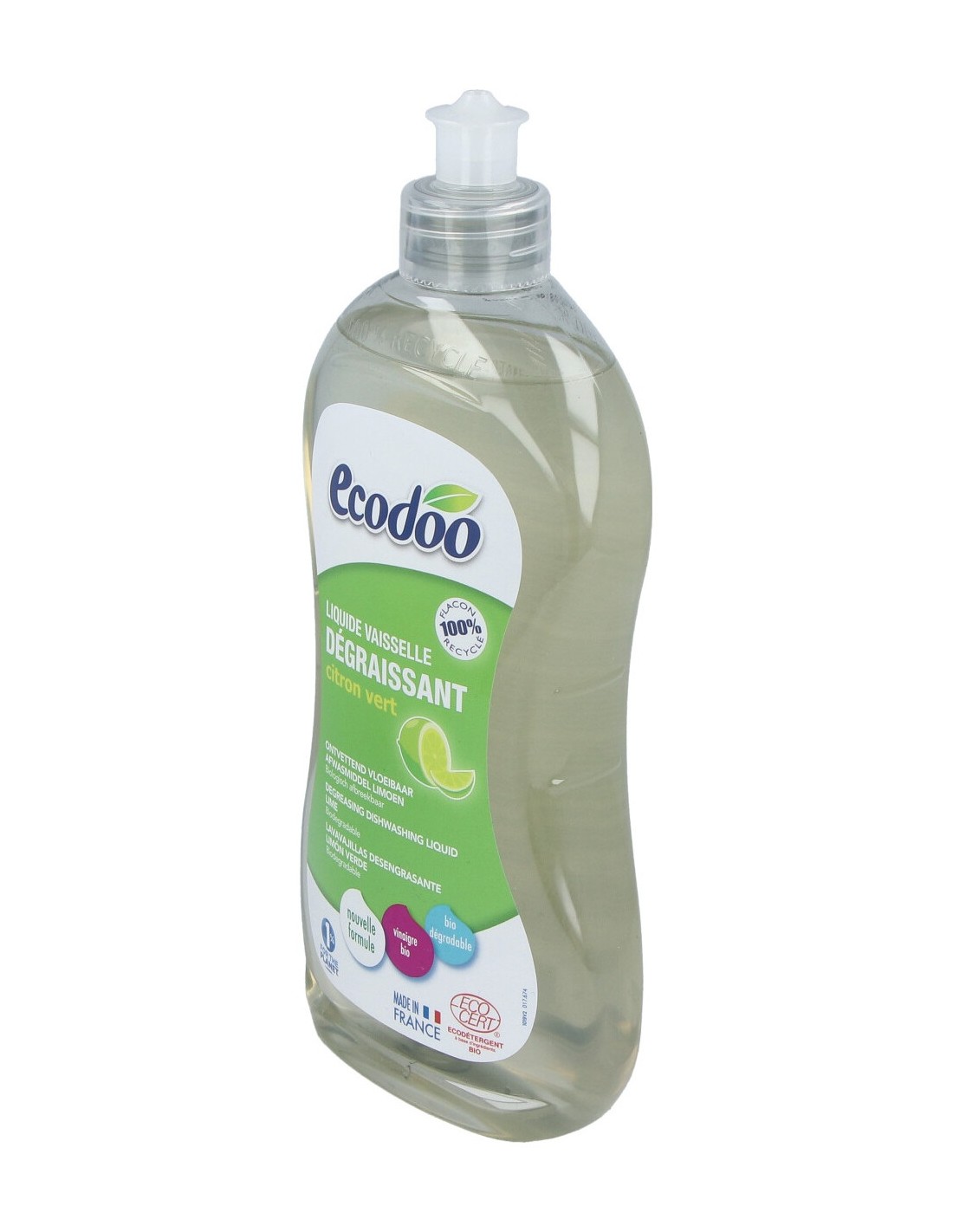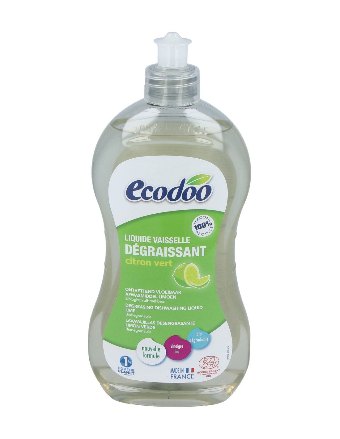 Lavavajillas líquido para lavar a mano. Desengrasante con aroma a limón verde. Se suministra en un envase 100% biodegradable. Para lavar la vajilla con mayor eficacia, ahorrar agua y energía, y proteger el medio ambiente, no dejar correr el agua, si no sumergir la vajilla y usar la dosis recomendada. No necesita mucha espuma para lograr un resultado óptimo. Mantener fuera del alcance de los niños. Evitar el contacto con los ojos. En caso de contacto enjuagar bien. No ingerir.
