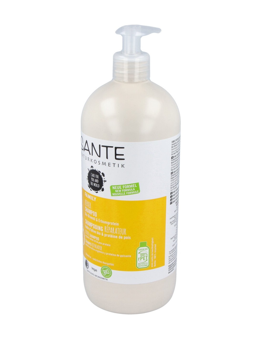 Nutre, repara y mejora la estructura del cabello. Limpia el cuero cabelludo y el cabello suave y completamente gracias a sus tensoactivos suaves de origen vegetal. Fortalece y suaviza el cabello. Para el cabello dañado. Producto vegano.