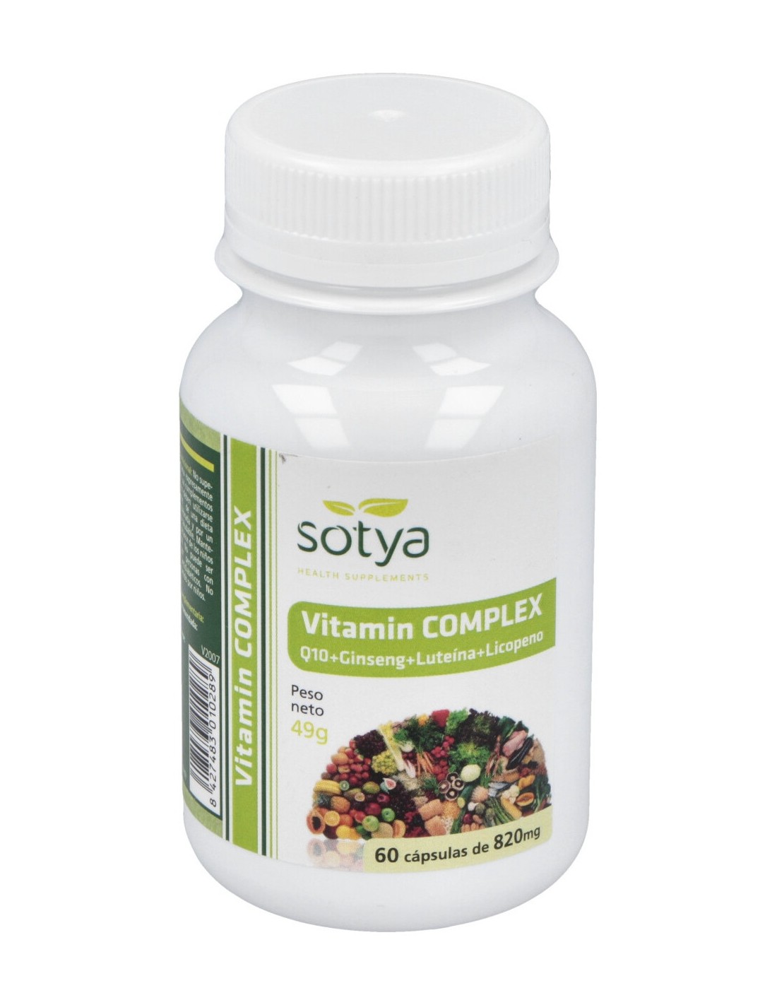 Sotya Vitamin Complex 820mg es un excelente suplemento para personas que sufren síntomas carenciales como: lesiones de piel, cabello y uñas frágiles, fatiga, convalescencia, dietas restrictivas, estrés...