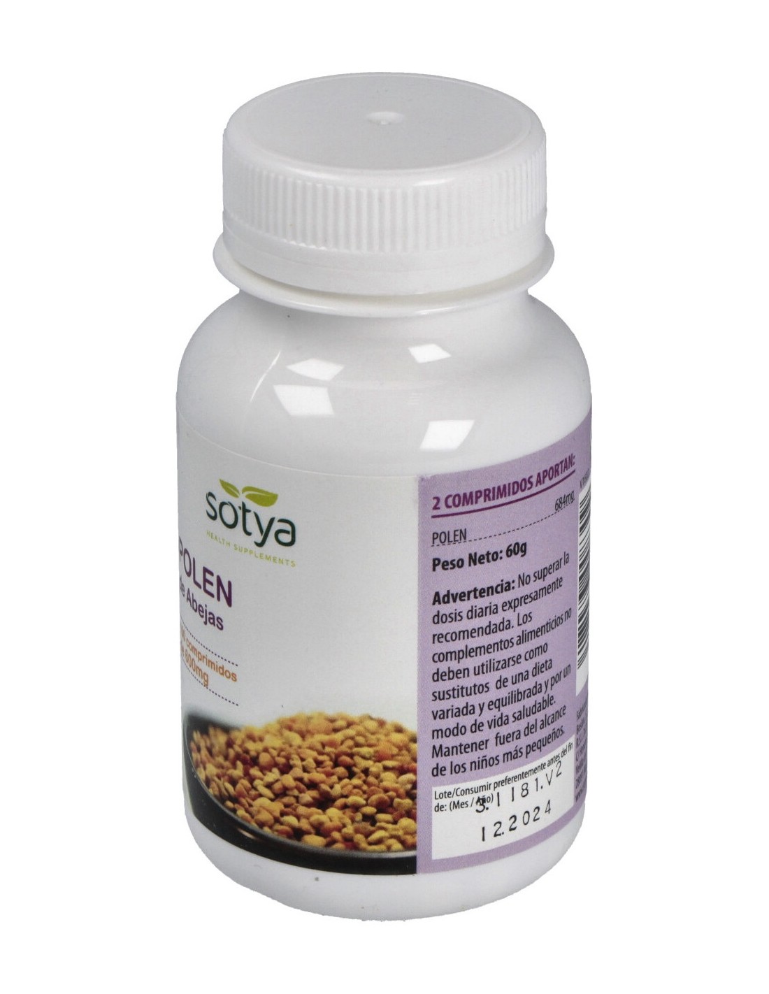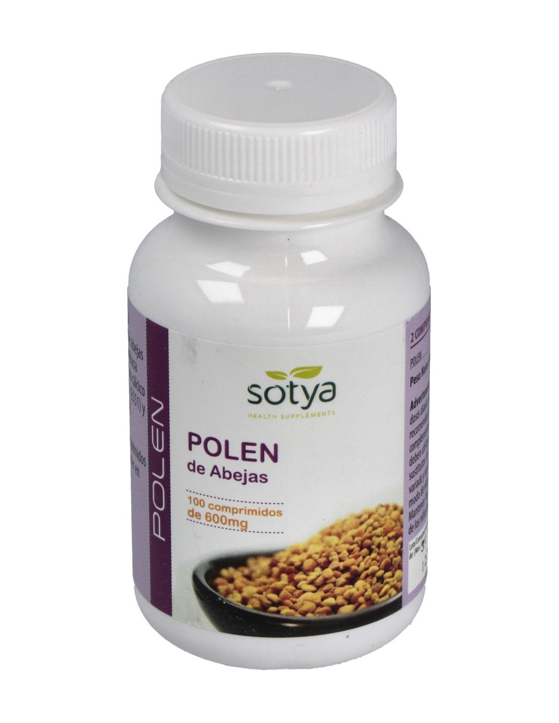 Sotya Polen 600mg es un complemento alimenticio muy nutritivo, rico en gran variedad de nutrientes esenciales para el organismo: vitaminas (complejo B, vitamina C), minerales, bioflavonoides, aminoácidos esenciales (ácido aspártico, ácido glutámico, cistina, glicina, prolina, serina, tronina, triptófano, tirosina...), enzimas, etc.