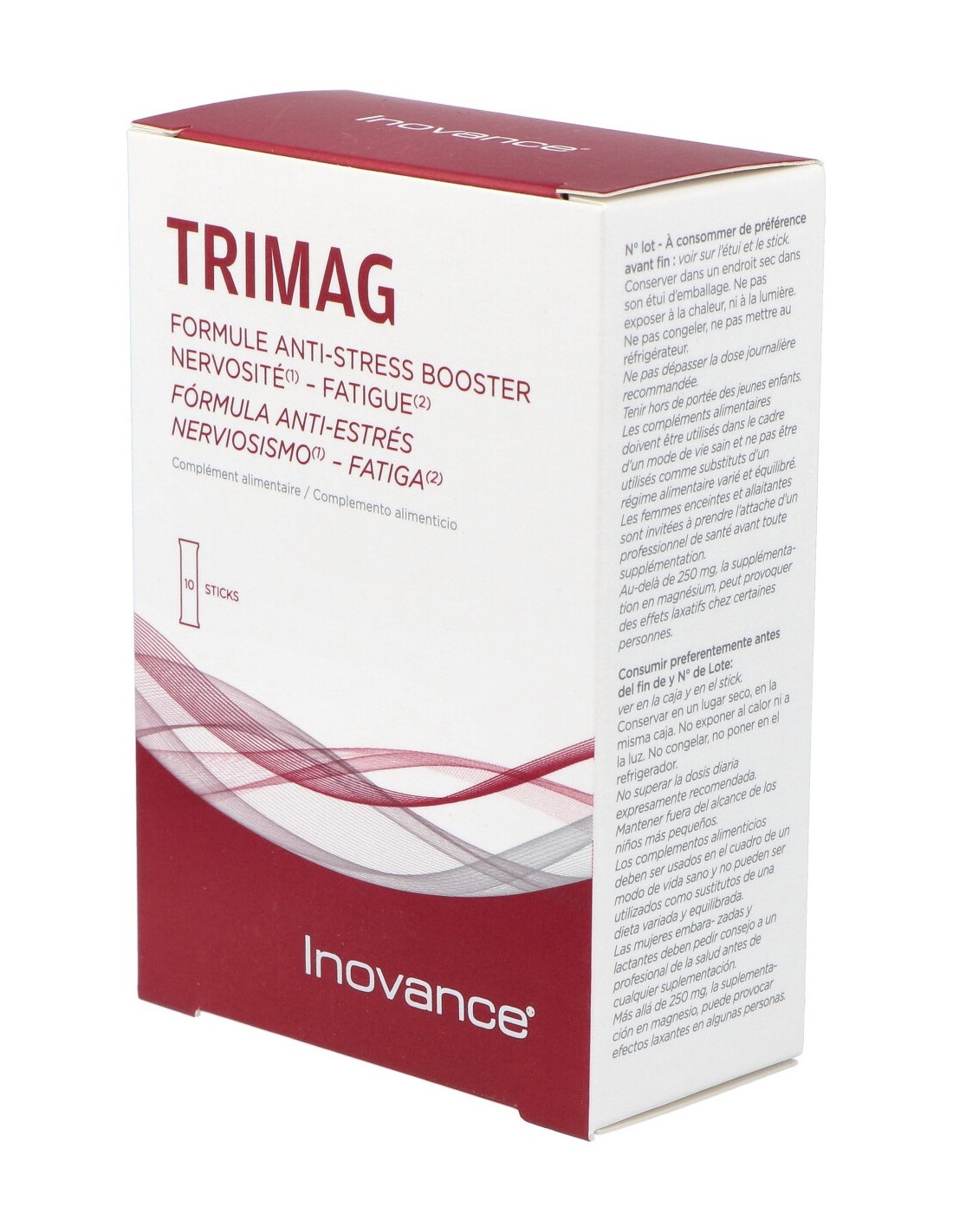 Complemento alimenticio a base de magnesio, vitamina B6 e hidrolizado de proteína de arroz. El magnesio y la vitamina B6 contribuyen al funcionamiento normal del sistema nervioso y a la función psicológica normal. Apto para veganos.TRIMAG 10sticks de INOVANCE