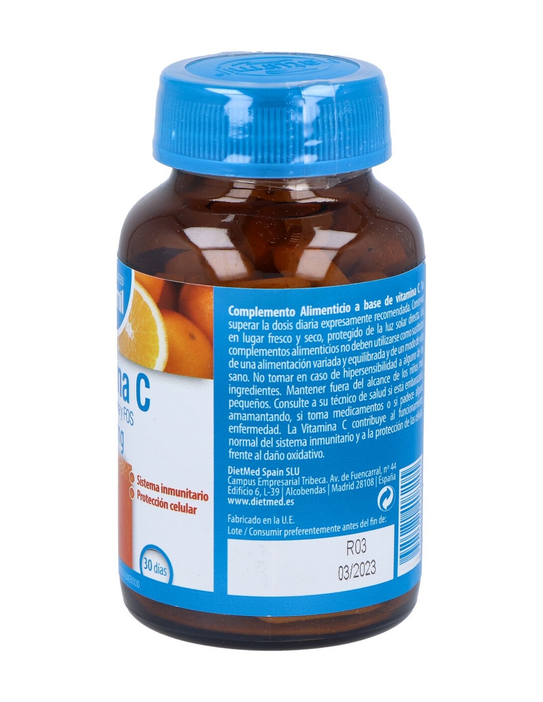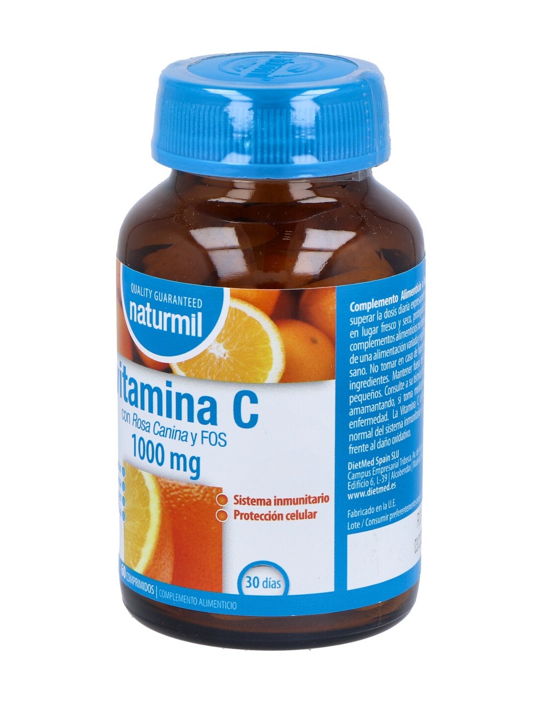 Tiene una acción antioxidante esencial, ayudando a las defensas orgánicas, así cono interviniendo en la síntesis de diversas sustancias importantes para el organismo. Es fundamental en la formación de colágeno (sustancia estructural de los músculos, tejidos vasculares, huesos, cartílagos, etc.), beneficia la absorción de hierro a partir de la dieta. Utilizado cono factor de protección contra gripes y resfriados o en situaciones de mayor debilidad física.VITAMINA C 1000mg. 60comp. de DIETMED