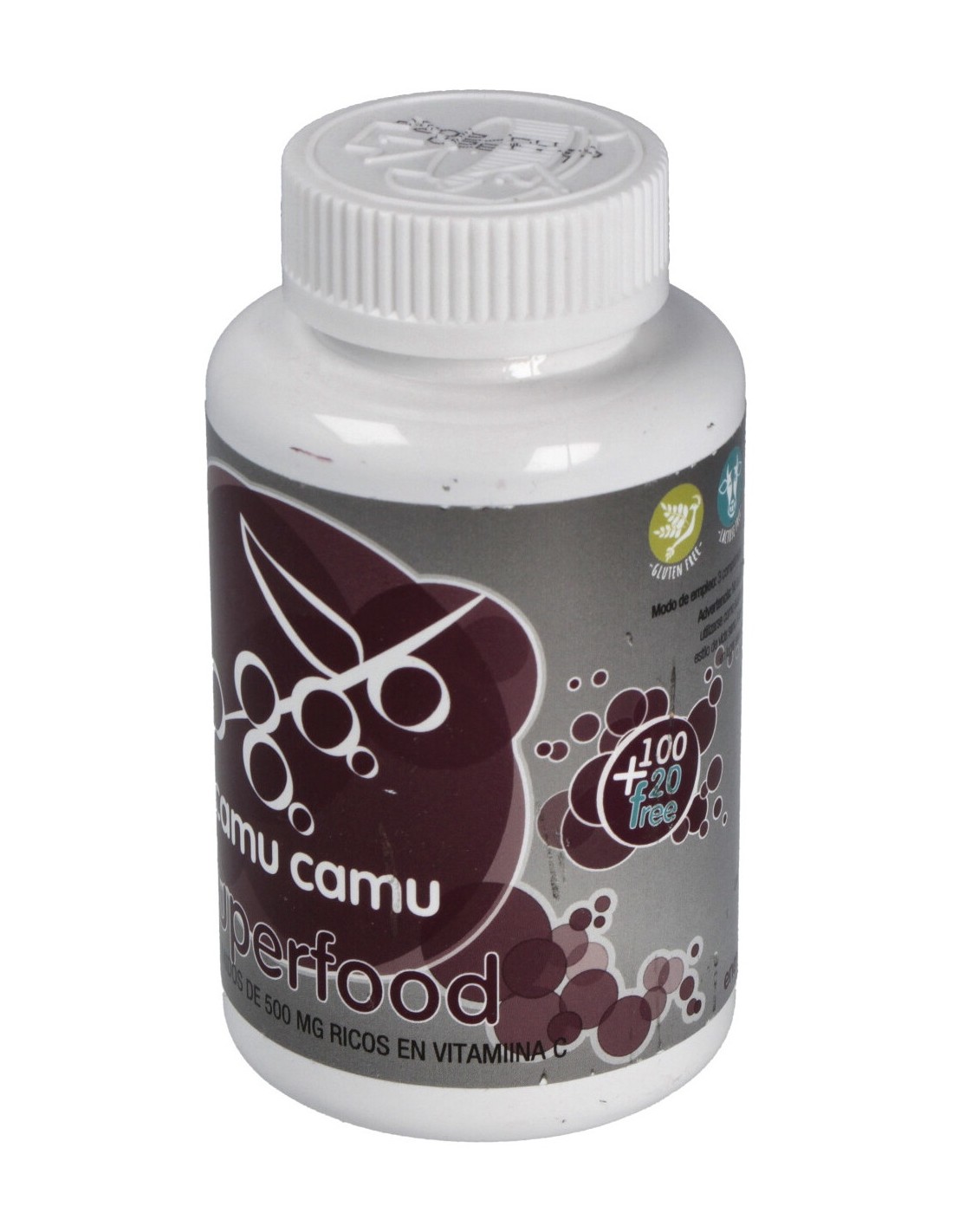 Complemento alimenticio en forma de comprimidos, elaborado a base de extractos de camu camu procedentes de la agricultura ecológica, un arbusto rico en vitamina C, que aporta propiedades antioxidantes, fósforo, potasio, calcio y hierro, muy beneficiosos para la salud del organismo.