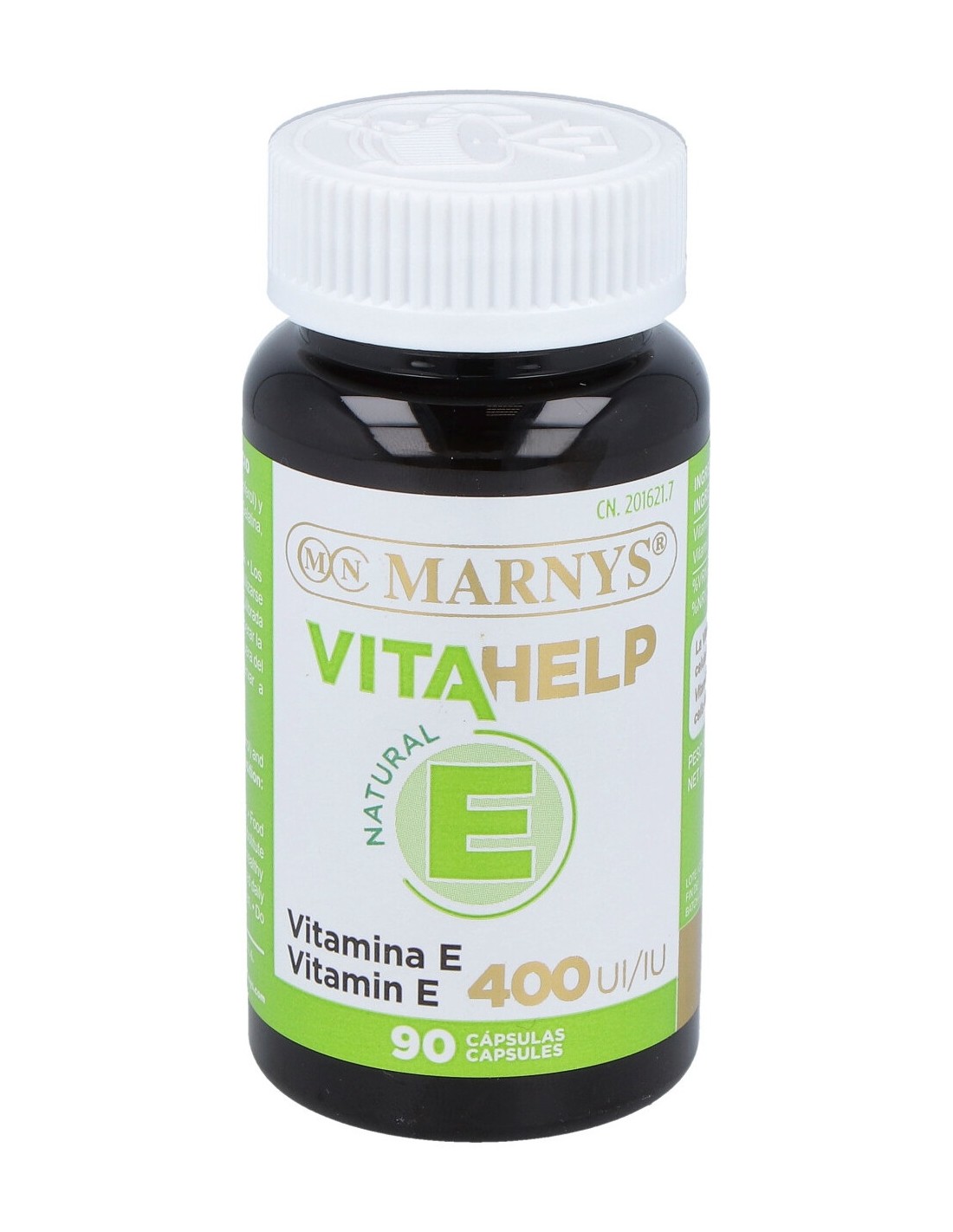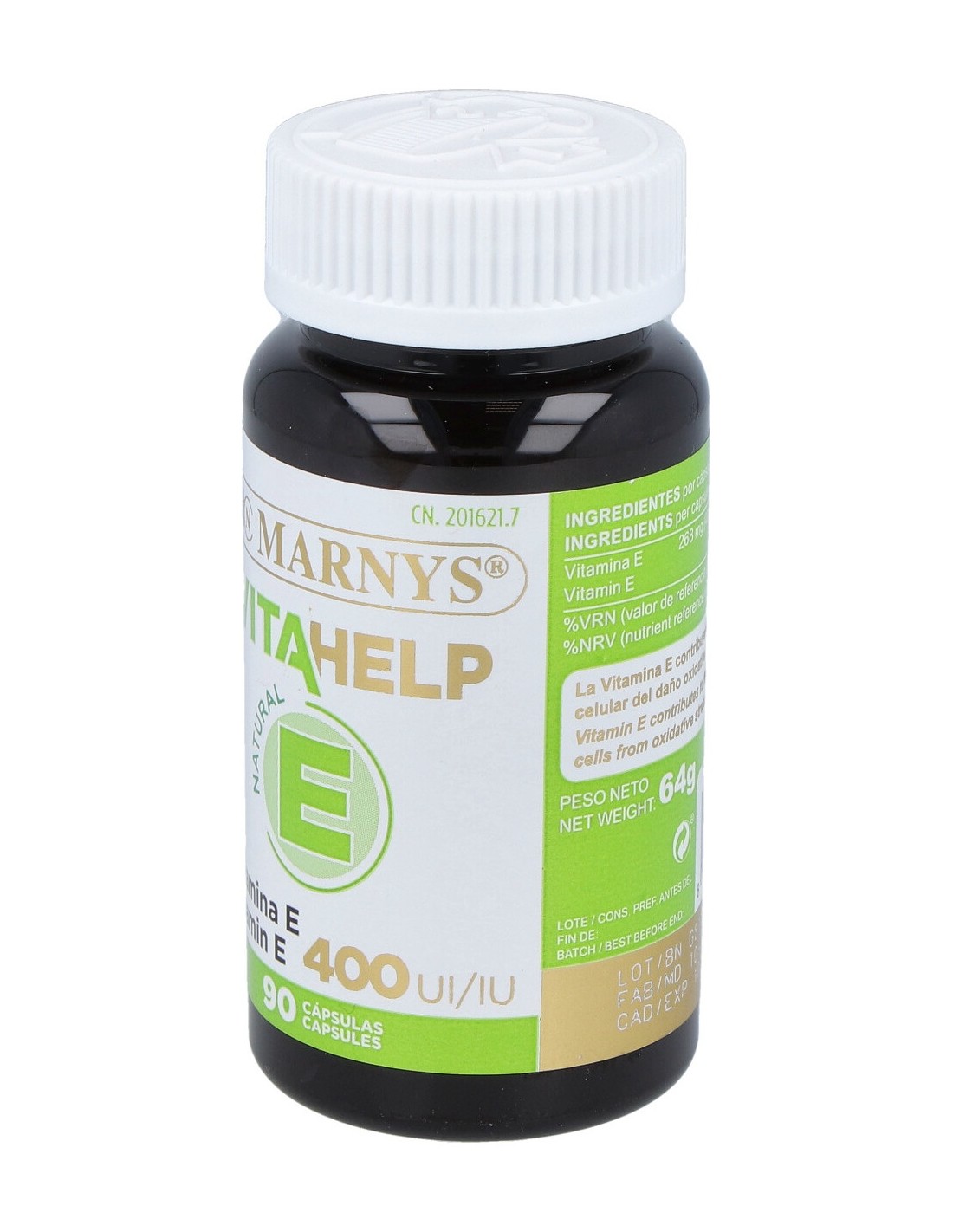 Vitamina E (D-α-tocoferol) y aceite de soja. Composición cápsula: Gelatina, glicerina y agua.