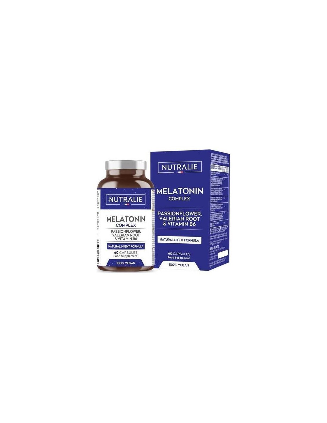 Extracto seco Amapola de california (Eschscholtzia californica Cham., parte aérea), extracto seco Passiflora (Passiflora Incarnata L. parte aérea), extracto seco Melissa (Melissa officinalis L. hoja), extracto seco Tila (Tilia platyphyllos Scop., flor), extracto seco Valeriana (Valeriana officinalis L., raiz), agente de carga (celulosa microcristalina), antiaglomerantes (estearato de magnesio y dióxido de silicio), Melatonina, clorhidrato de piridoxina (Vitamina B6). Cápsula: agente de recubrimiento (Hidroxipropilmetilcelulosa)