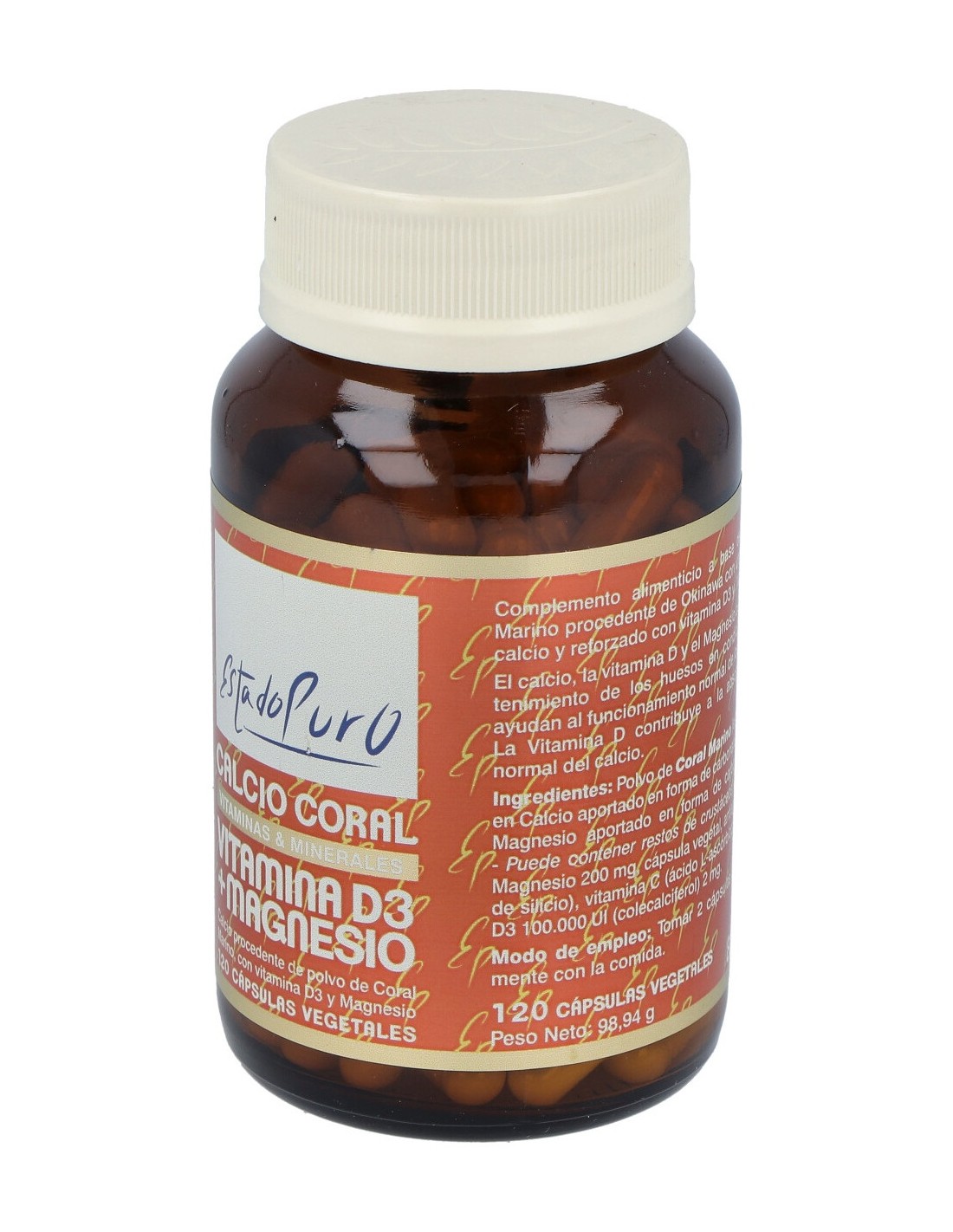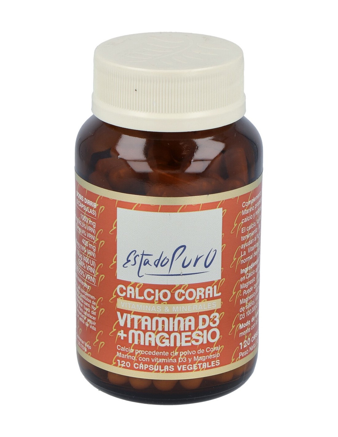 Estado Puro Calcio Coral Vitamina D3 Magnesio 120caps es un complemento alimenticio compuesto por una composición única, muy rica en minerales.