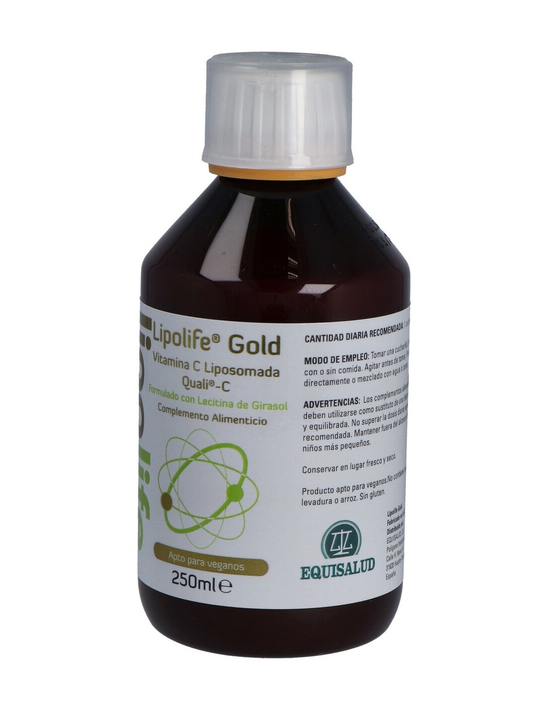 Complemento alimenticio elaborado a base de vitamina C y apto para veganos. Formulado con aloe vera, ascorbato de potasio, ascorbato de sodio, glicerol, lecitina de girasol, quali®-c, sorbato potásico y vitamina e entre otros. El producto presenta formato de 250ml. Puede tomarse directamente o mezclado con agua o zumo.