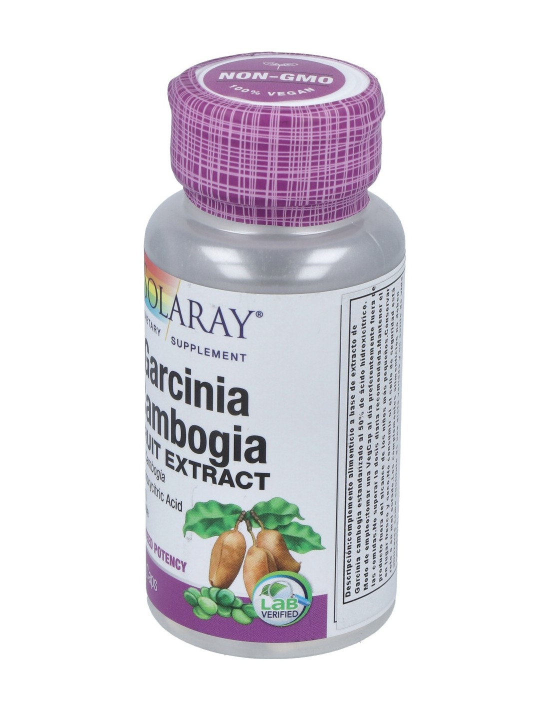 Complemento alimenticio a base de extracto de Garcinia cambogia estandarizado al 50% de ácido hidroxicitrico. Apto para veganos.