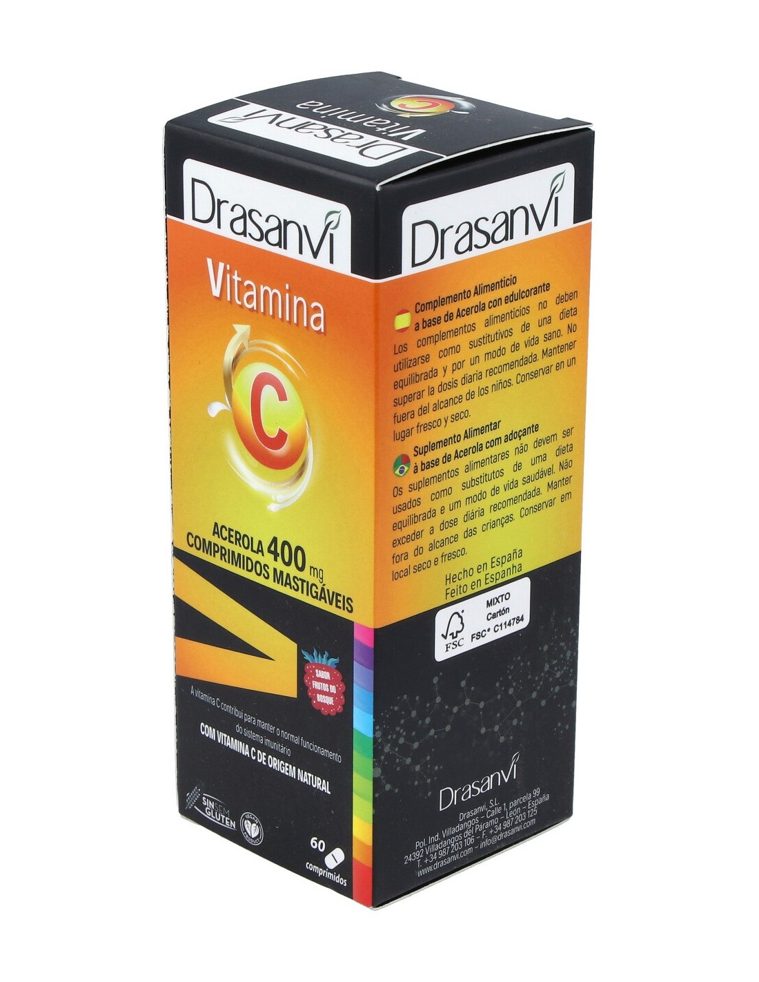 Complemento alimenticio en forma de comprimidos masticables, elaborado a base de extractos acerola, que aportan un alto contenido en vitamina C por toma. Contribuye al funcionamiento normal del sistema inmunitario y a la formación normal de colágeno para favorecer el buen estado de piel, dientes, encías, cartílagos, huesos y vasos sanguíneos.